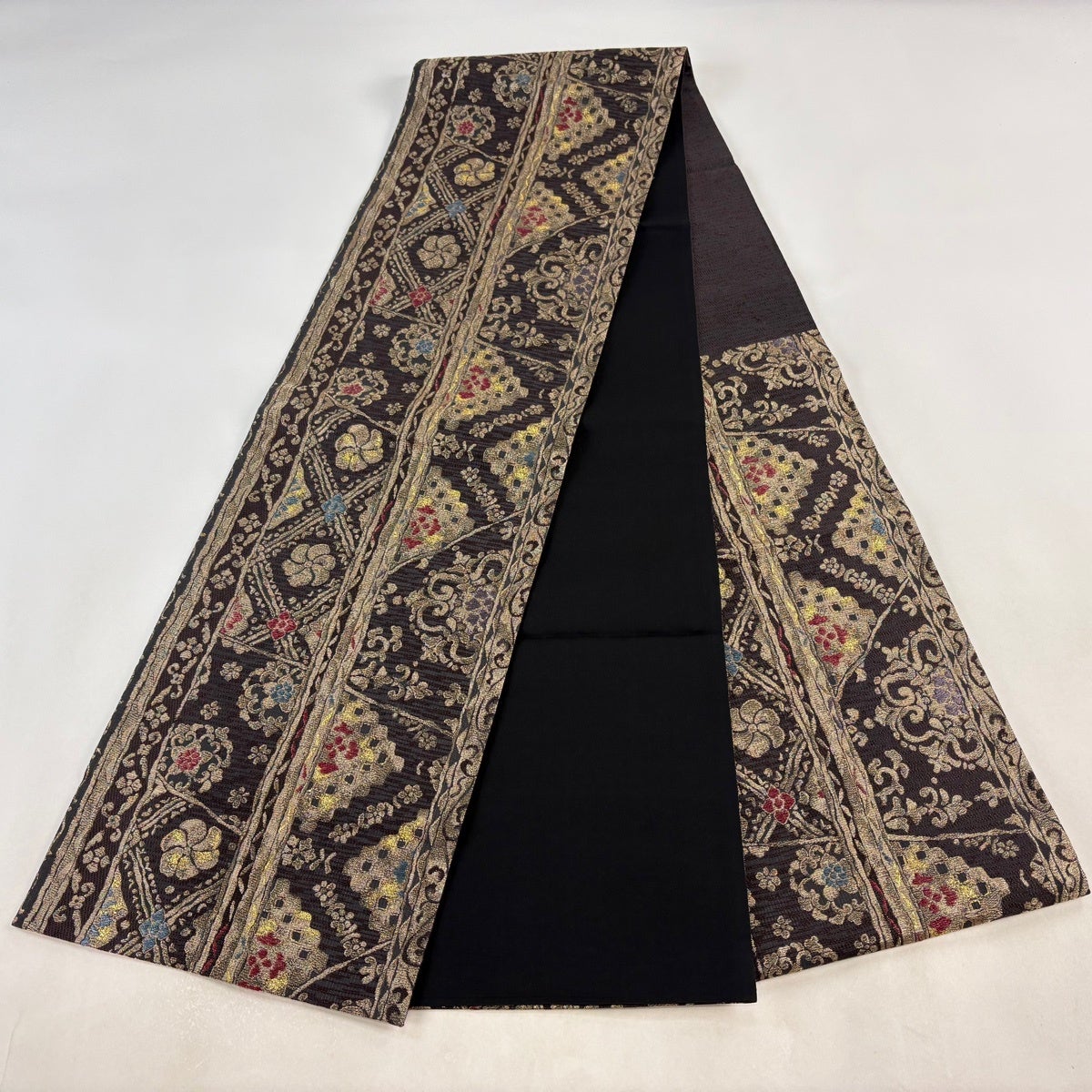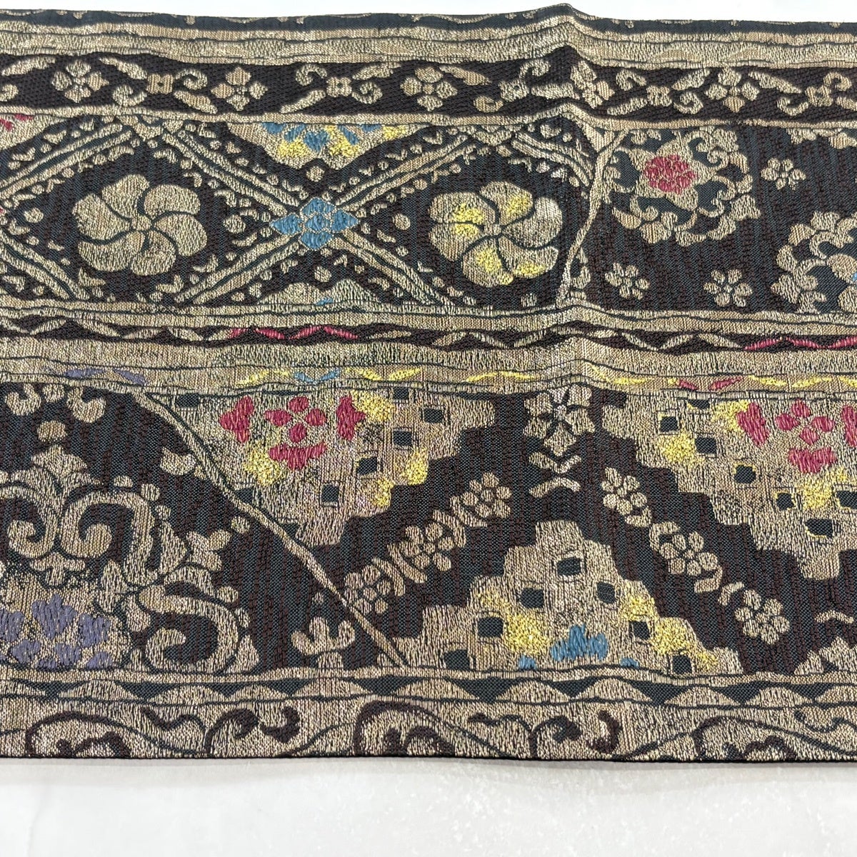 【美品】 袋帯 名品 菱 花 金糸 箔 焦茶色 六通 正絹