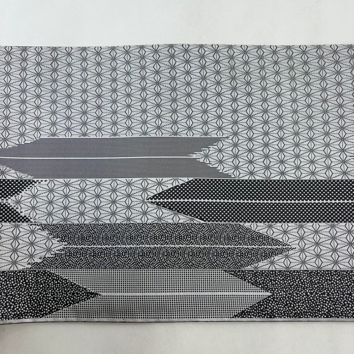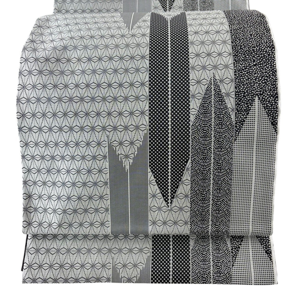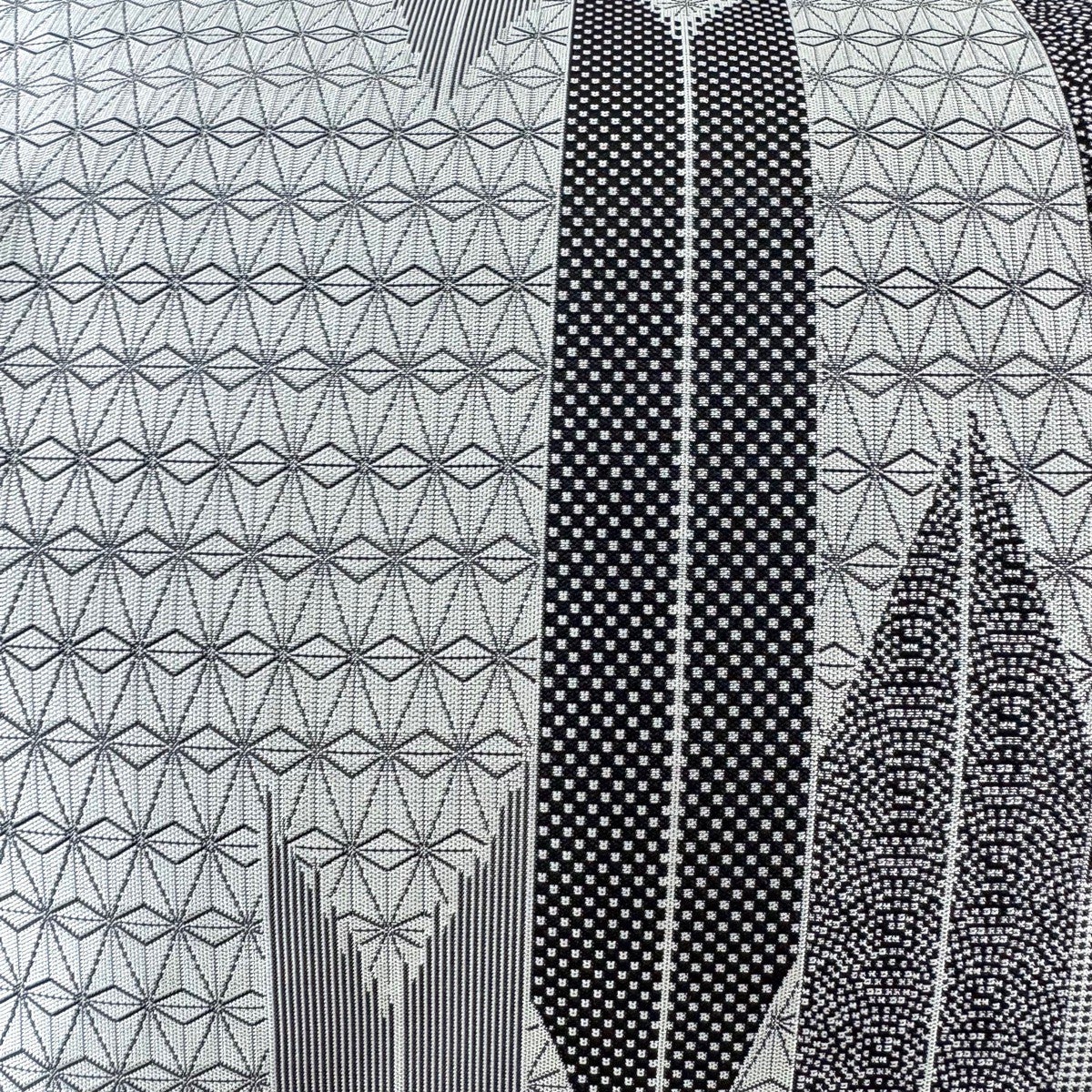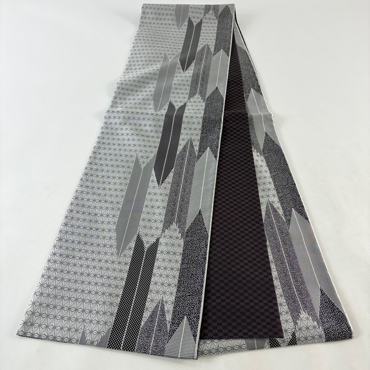 【美品】 袋帯 名品 紹巴 矢羽 幾何学 灰色 全通 正絹