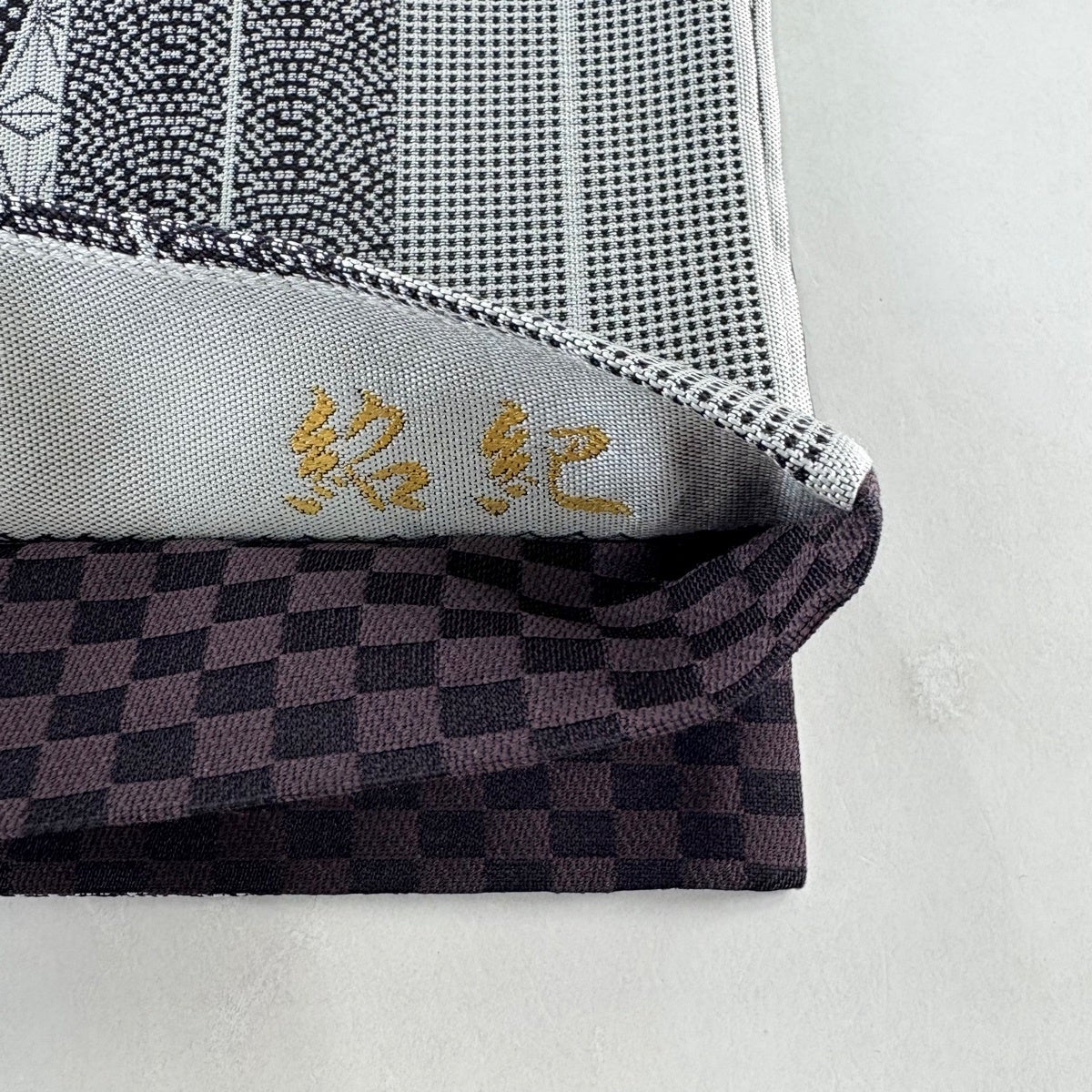 【美品】 袋帯 名品 疋田 変わり市松 焦茶色 全通 正絹