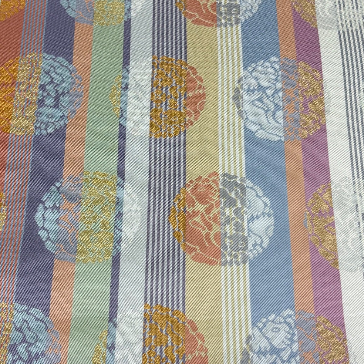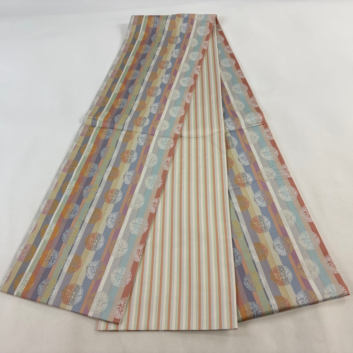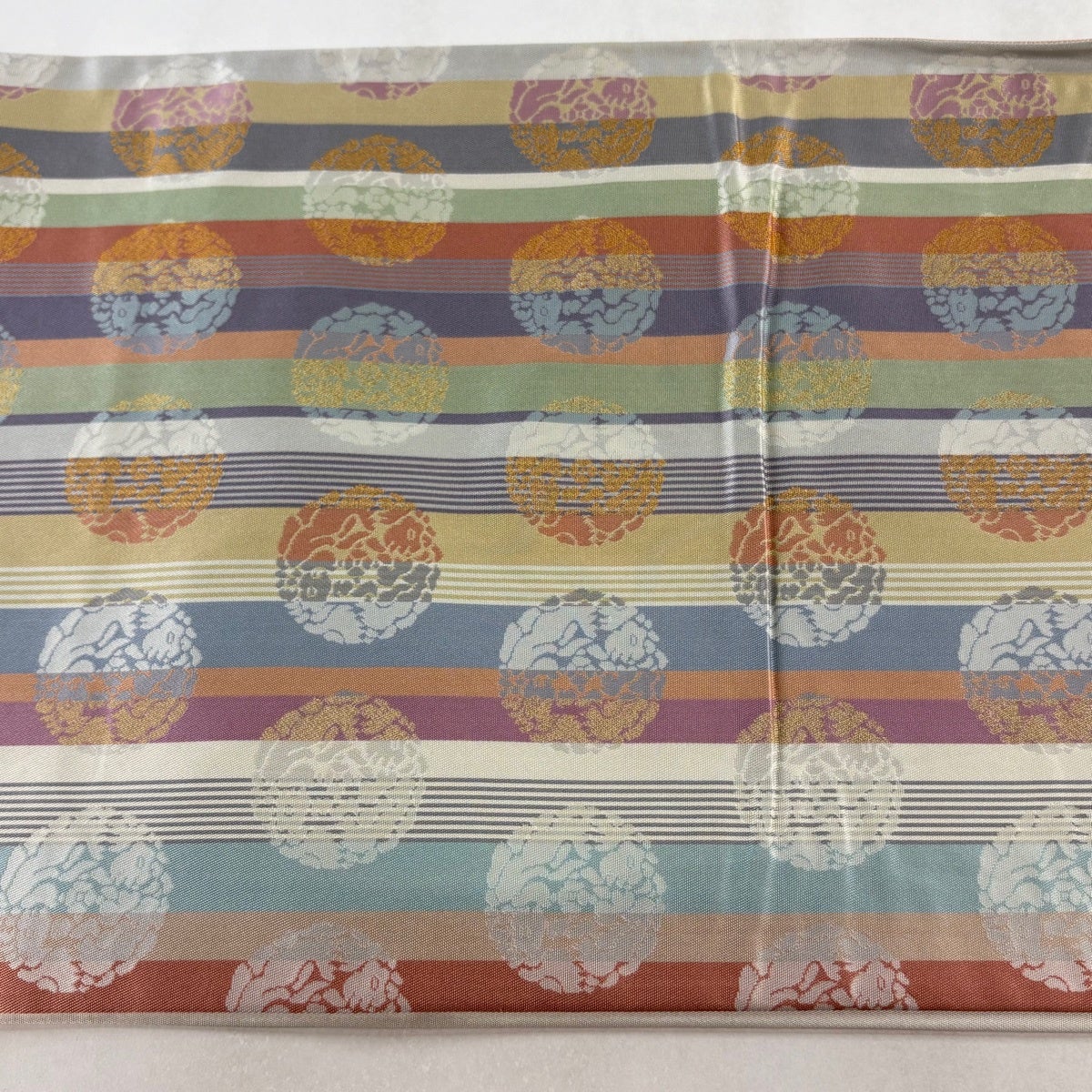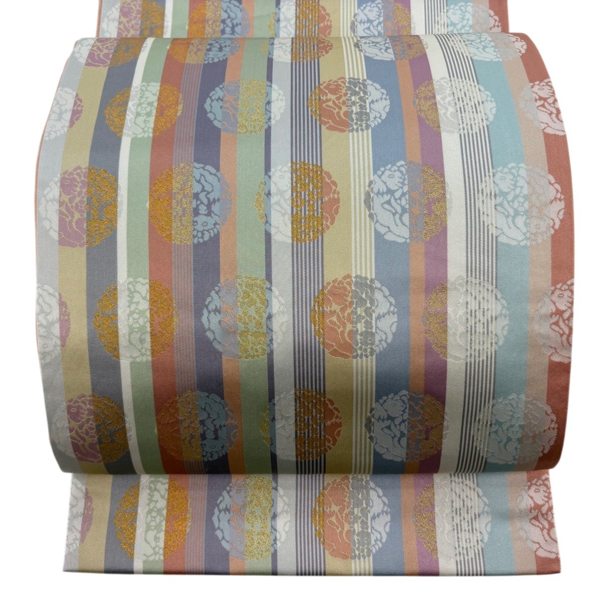 【美品】 袋帯 秀品 華文 扇面 金糸 箔 灰白 六通 正絹
