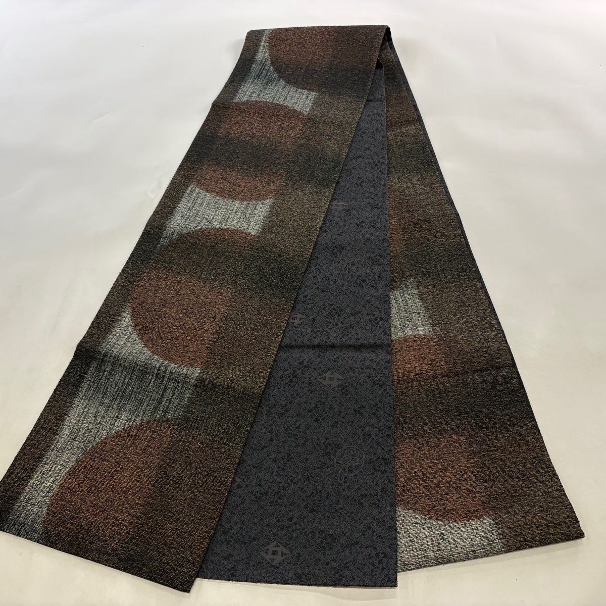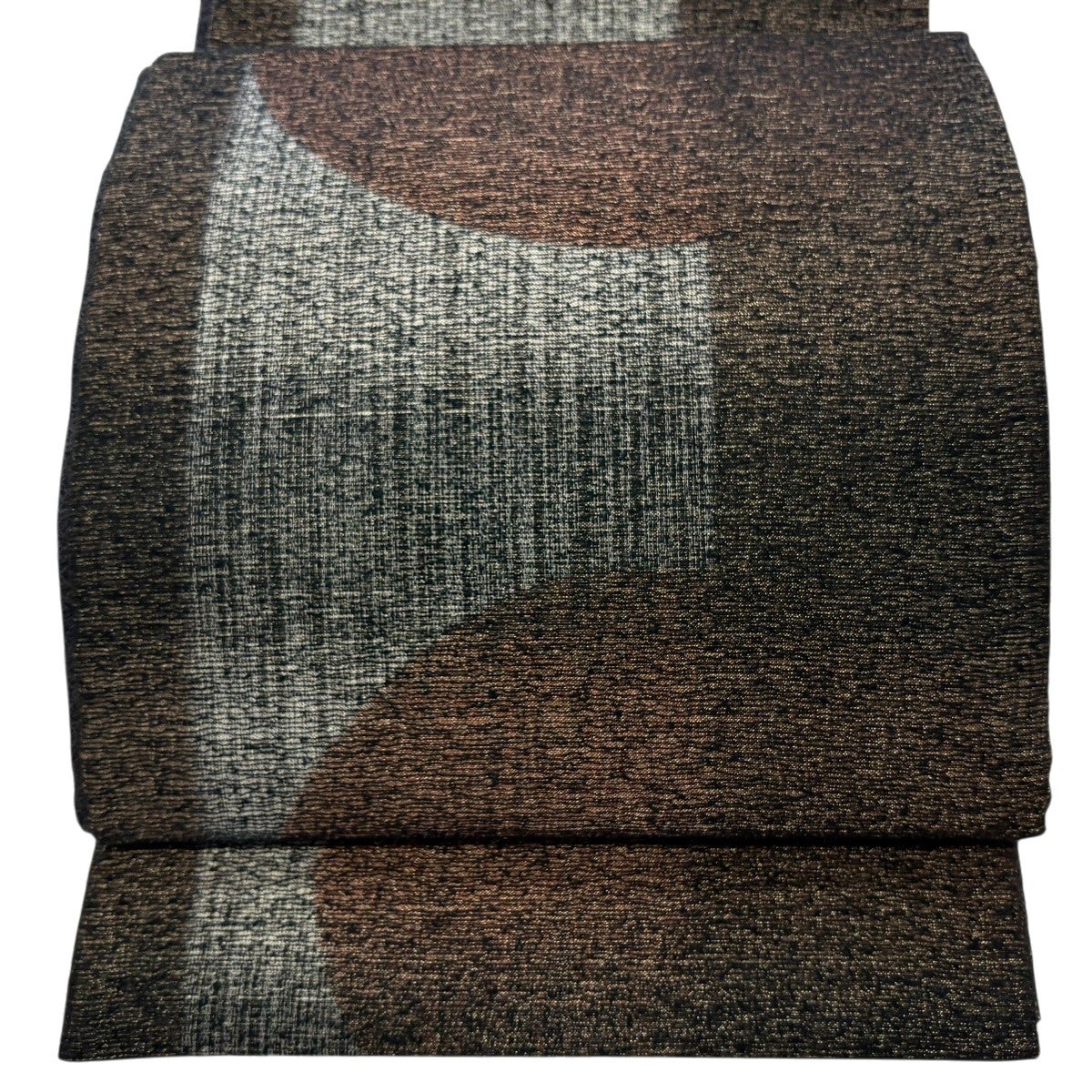 【美品】 袋帯 名品 紬地 霞 灰茶 お太鼓柄 正絹