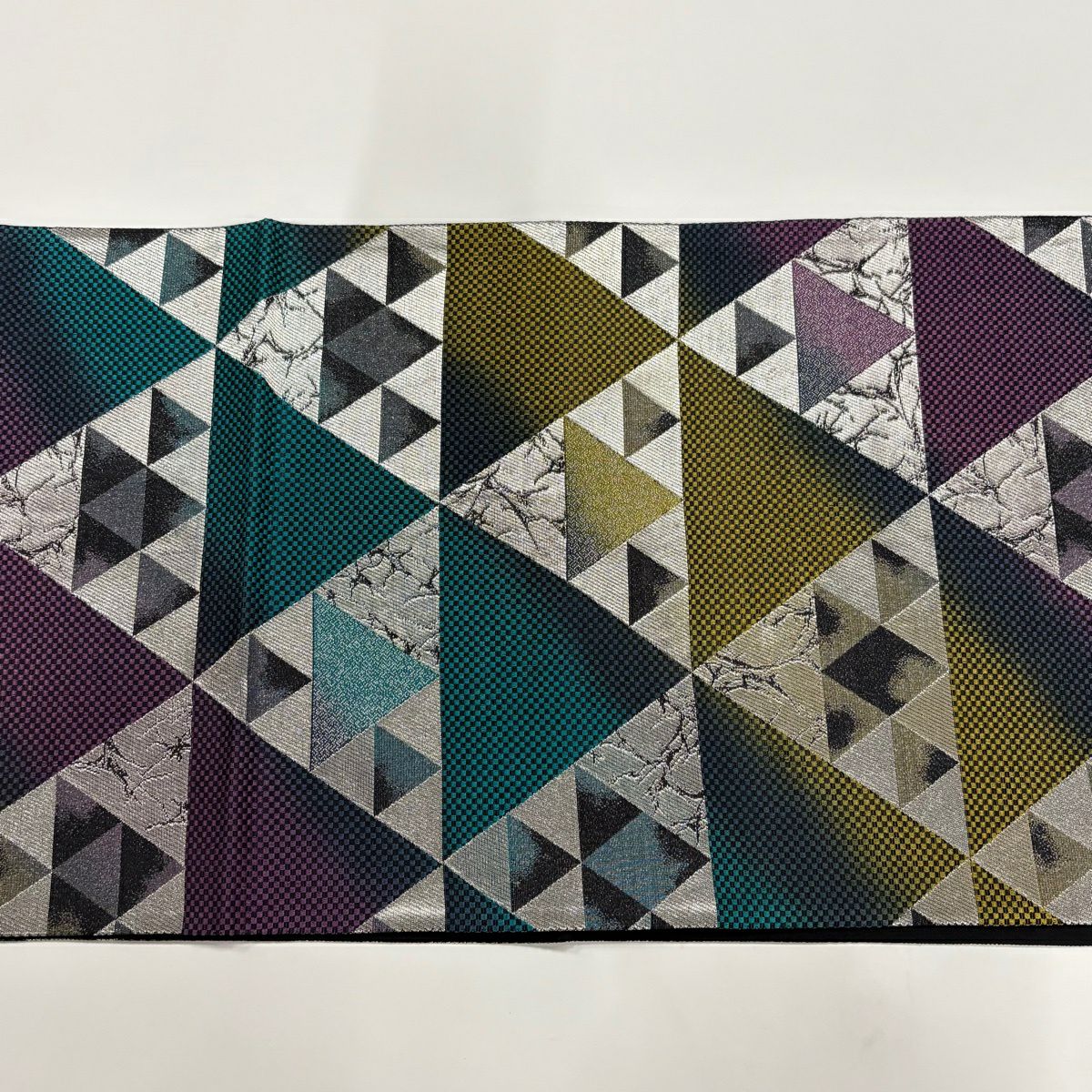 【美品】 袋帯 名品 幾何学 銀糸 薄紫 全通 正絹