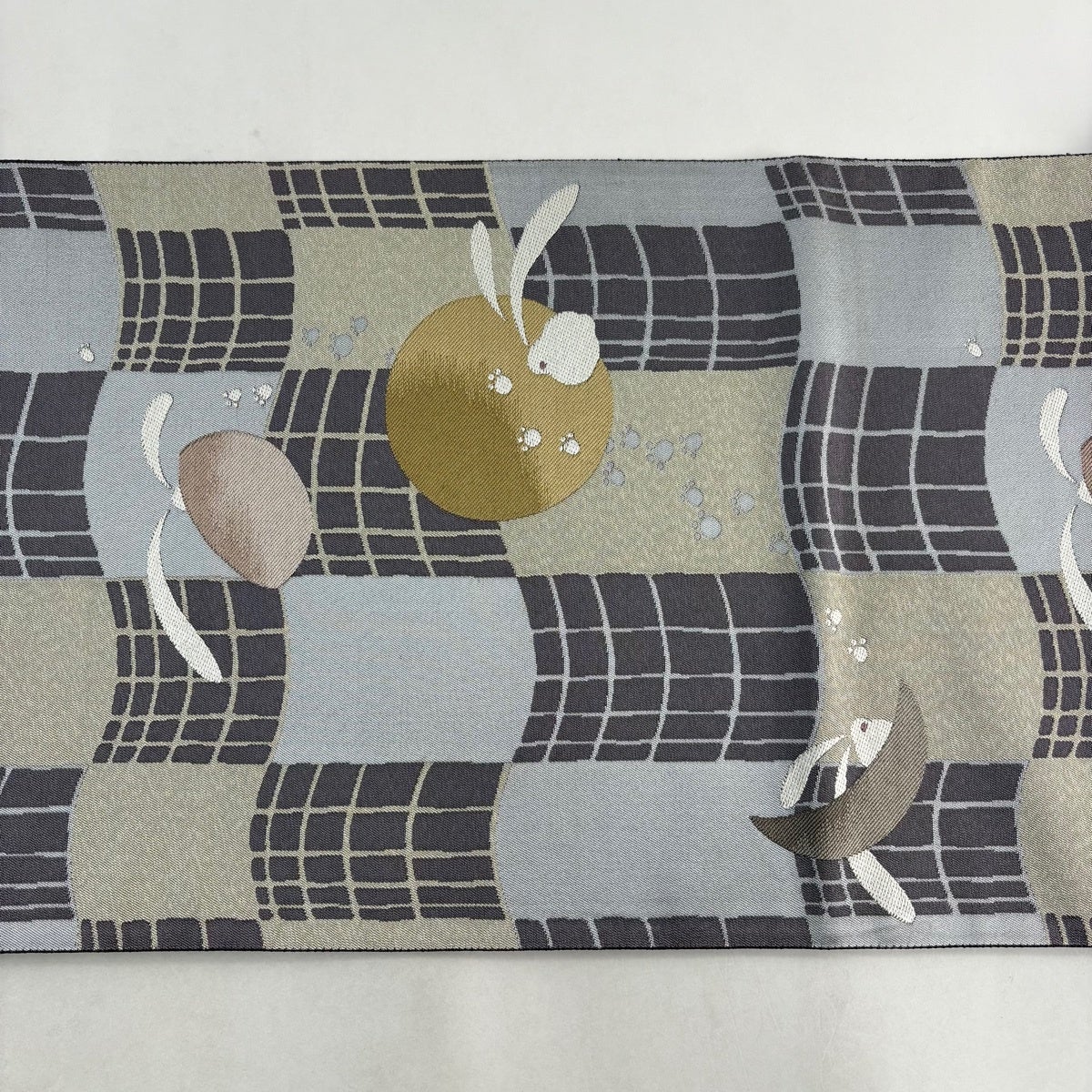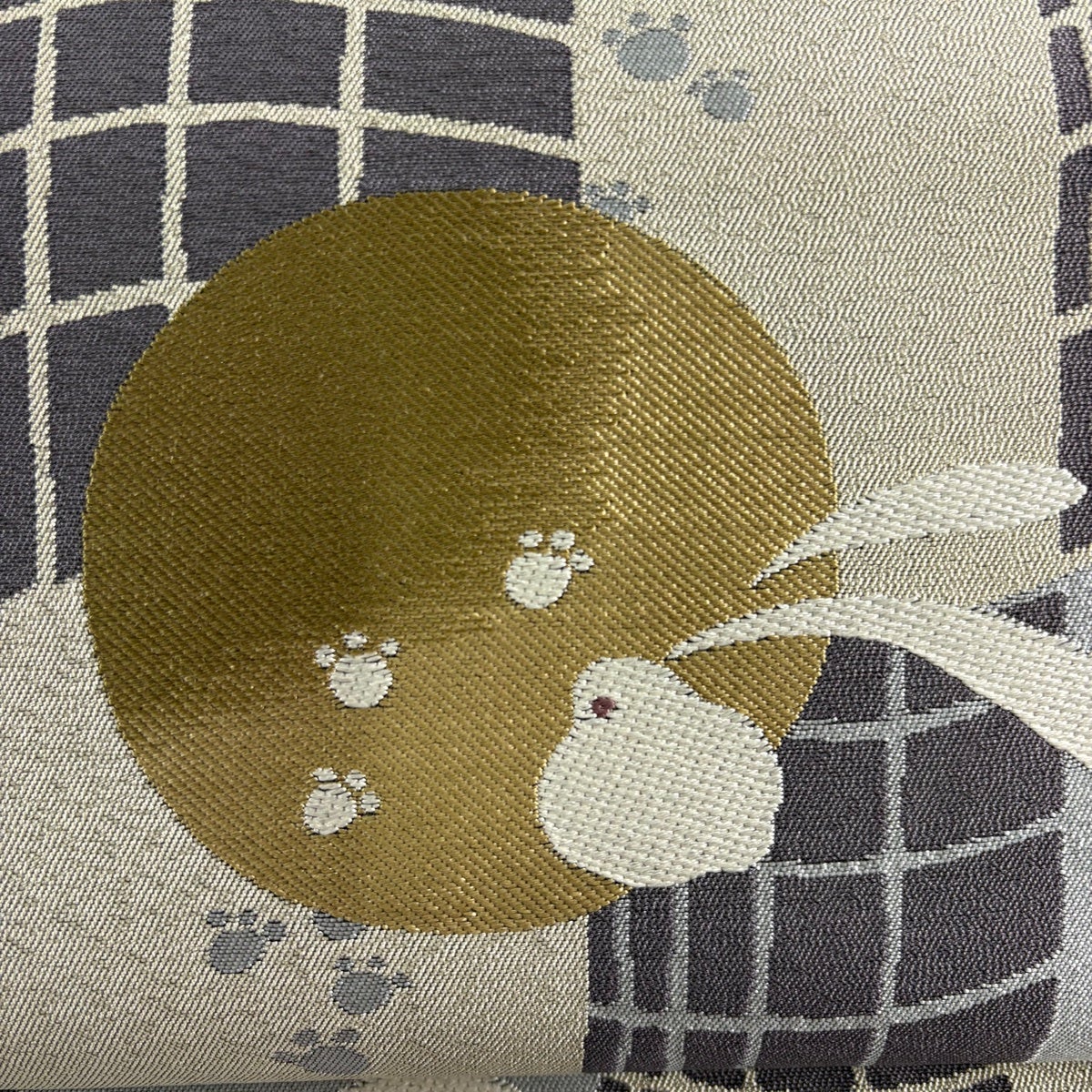 【美品】 袋帯 名品 うさぎ 地紋 唐織 灰色 六通 正絹