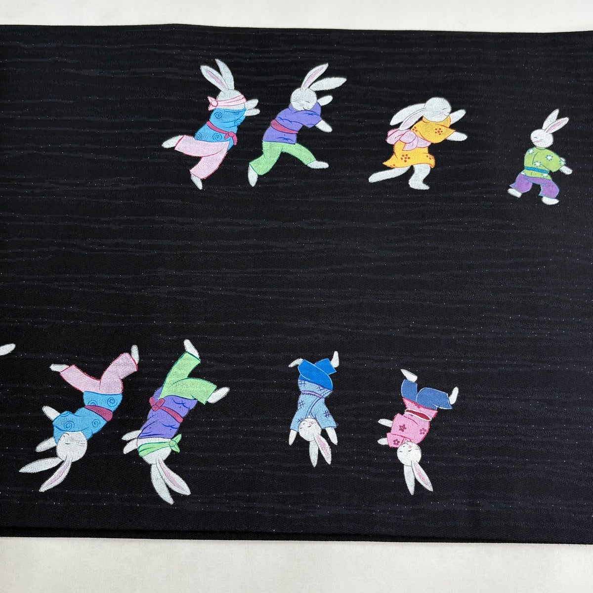 名古屋帯 逸品 うさぎ 楽器 刺繍 箔 クリーム 正絹