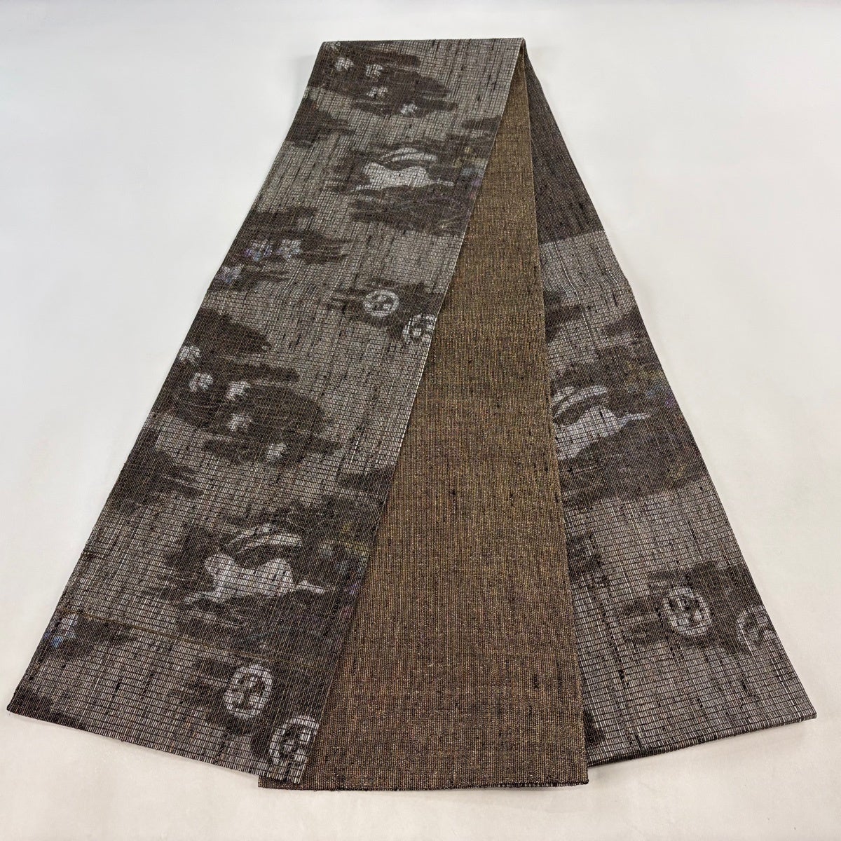 反物 名品 帯反物 絵馬 うさぎ 金糸 刺繍 薄茶色 正絹