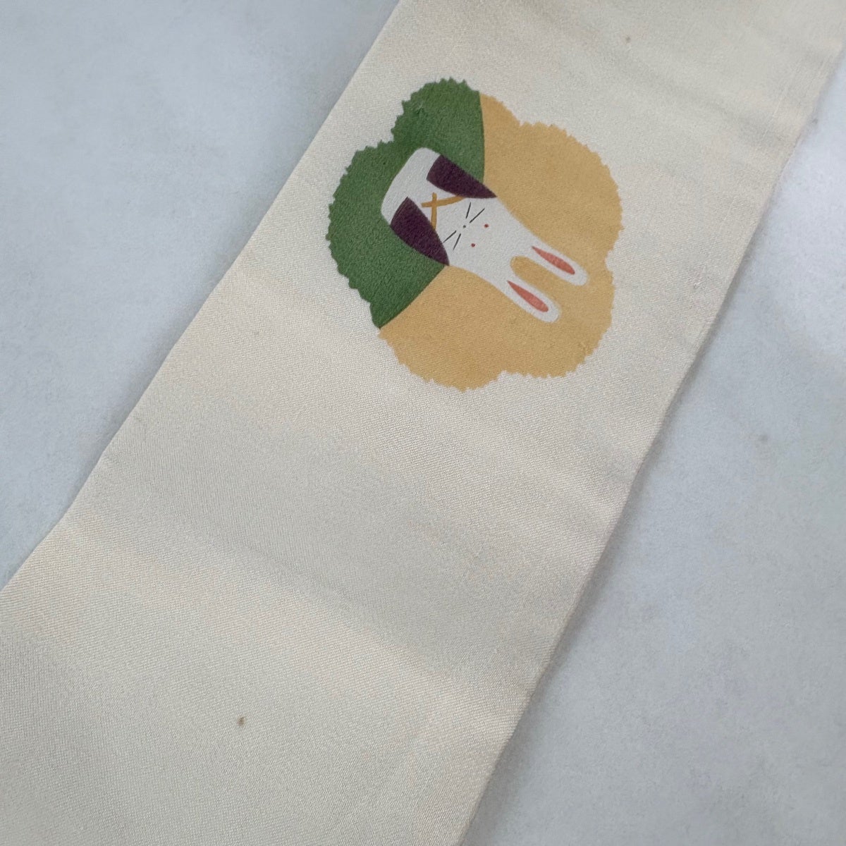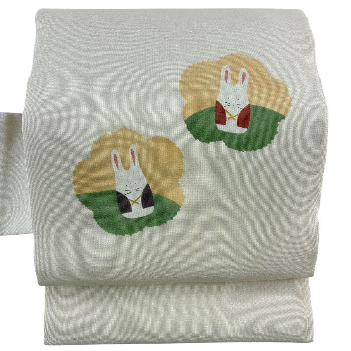 【美品】半幅帯 優品 うさぎ 桃太郎 ベージュ 化繊