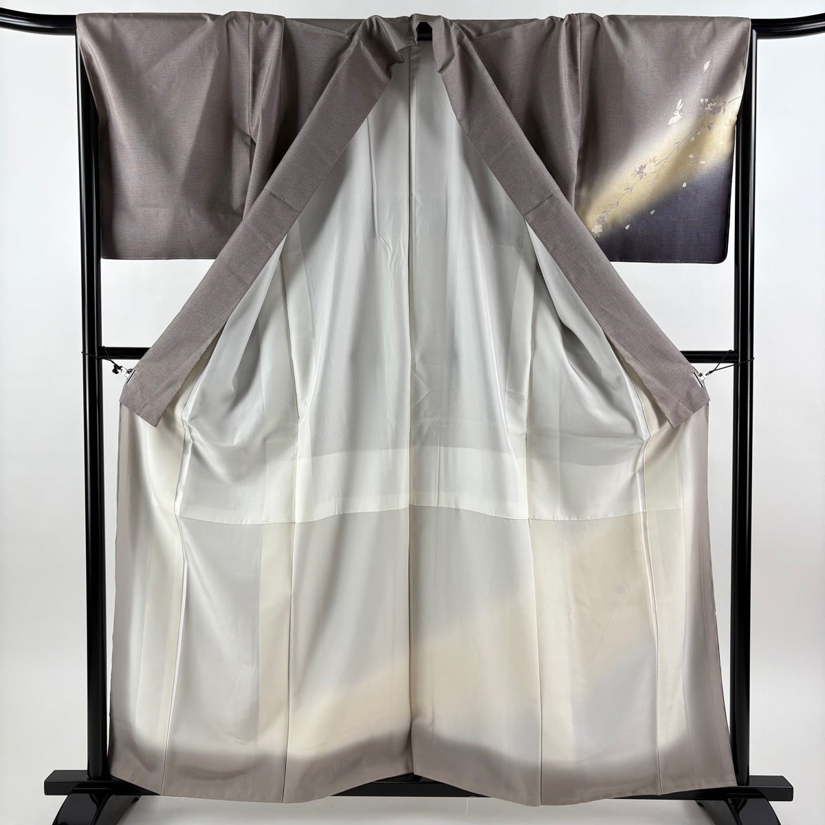 付下げ 身丈164.5cm 裄丈66.5cm M 袷 うさぎ 月 螺鈿箔 茶紫 正絹 逸品