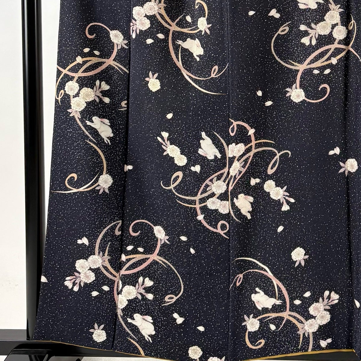 付下げ 身丈159cm 裄丈62.5cm S 袷 うさぎ 餅つき 銀彩 濃紫 正絹 名品