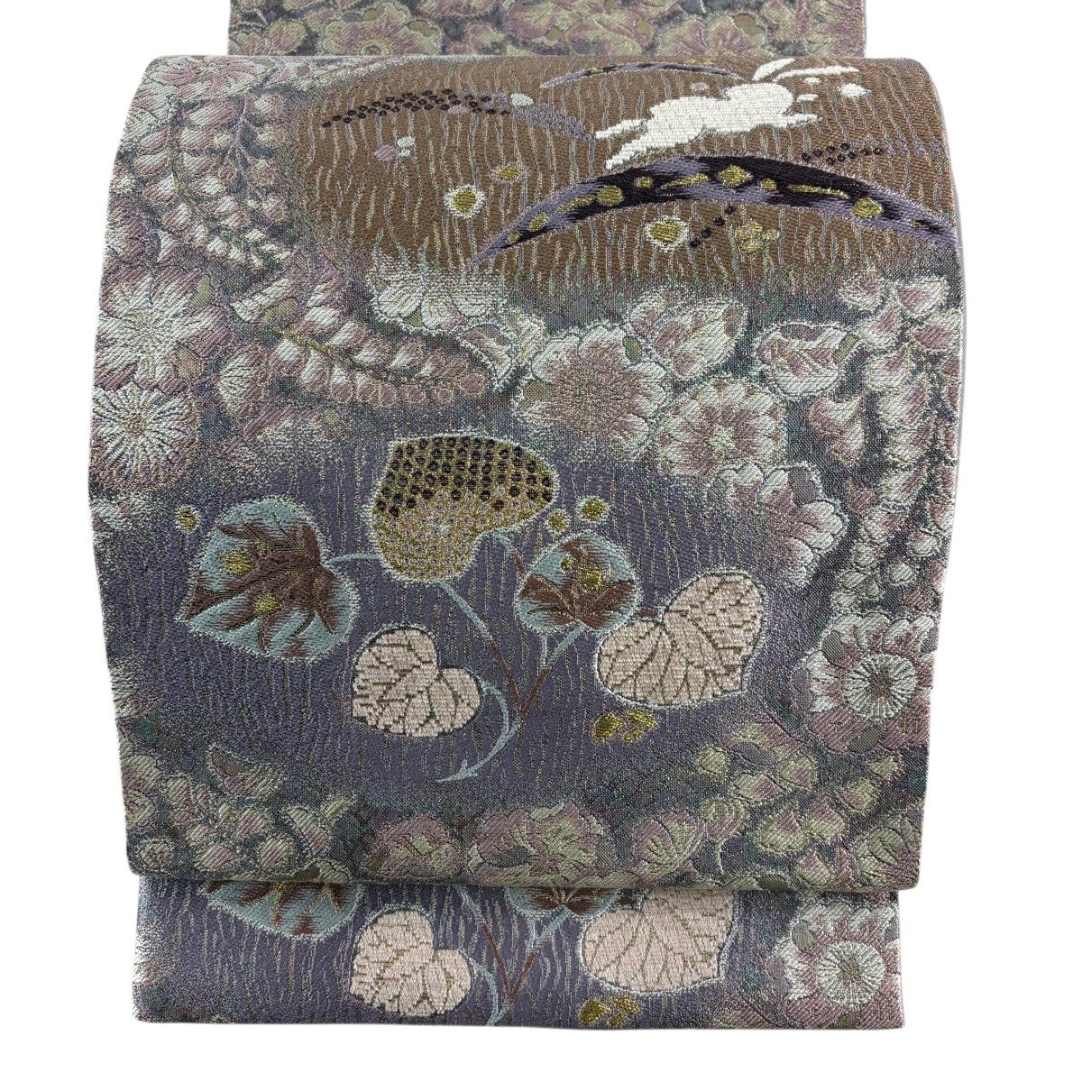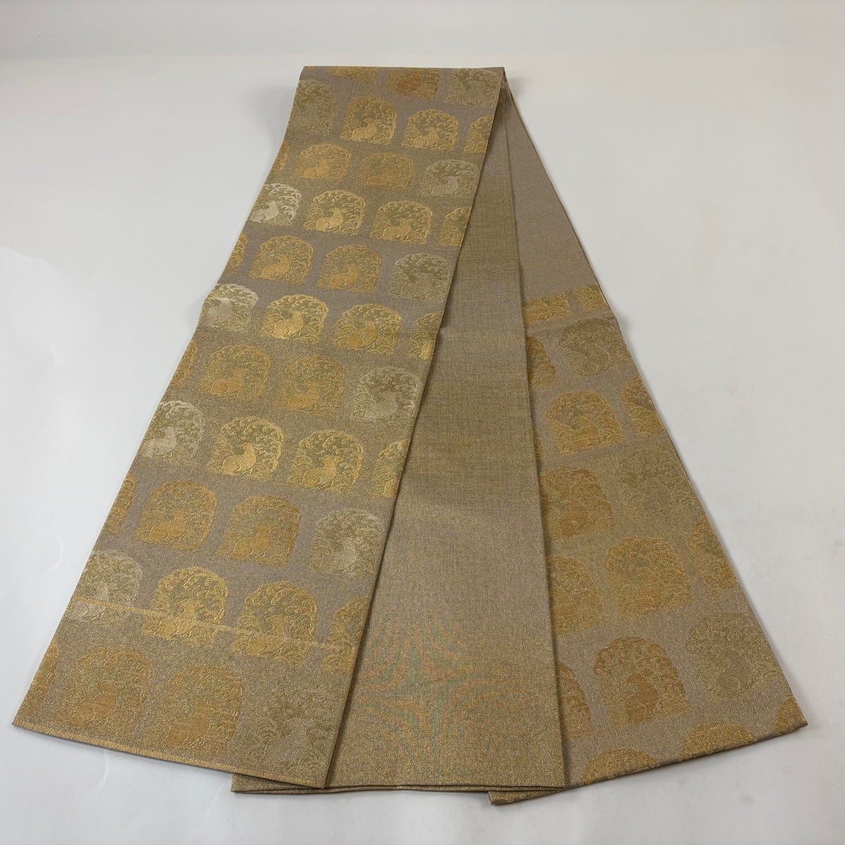 袋帯 逸品 誉田屋源兵衛 落款あり 松竹梅 うさぎ 金銀糸 刺繍 ベージュ 六通 正絹