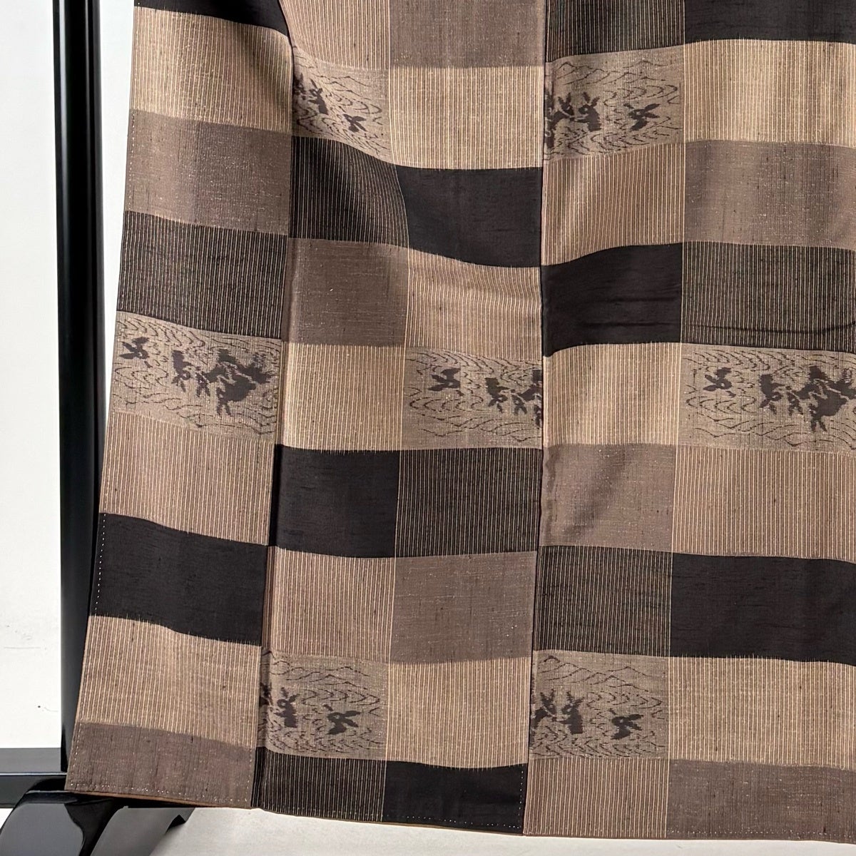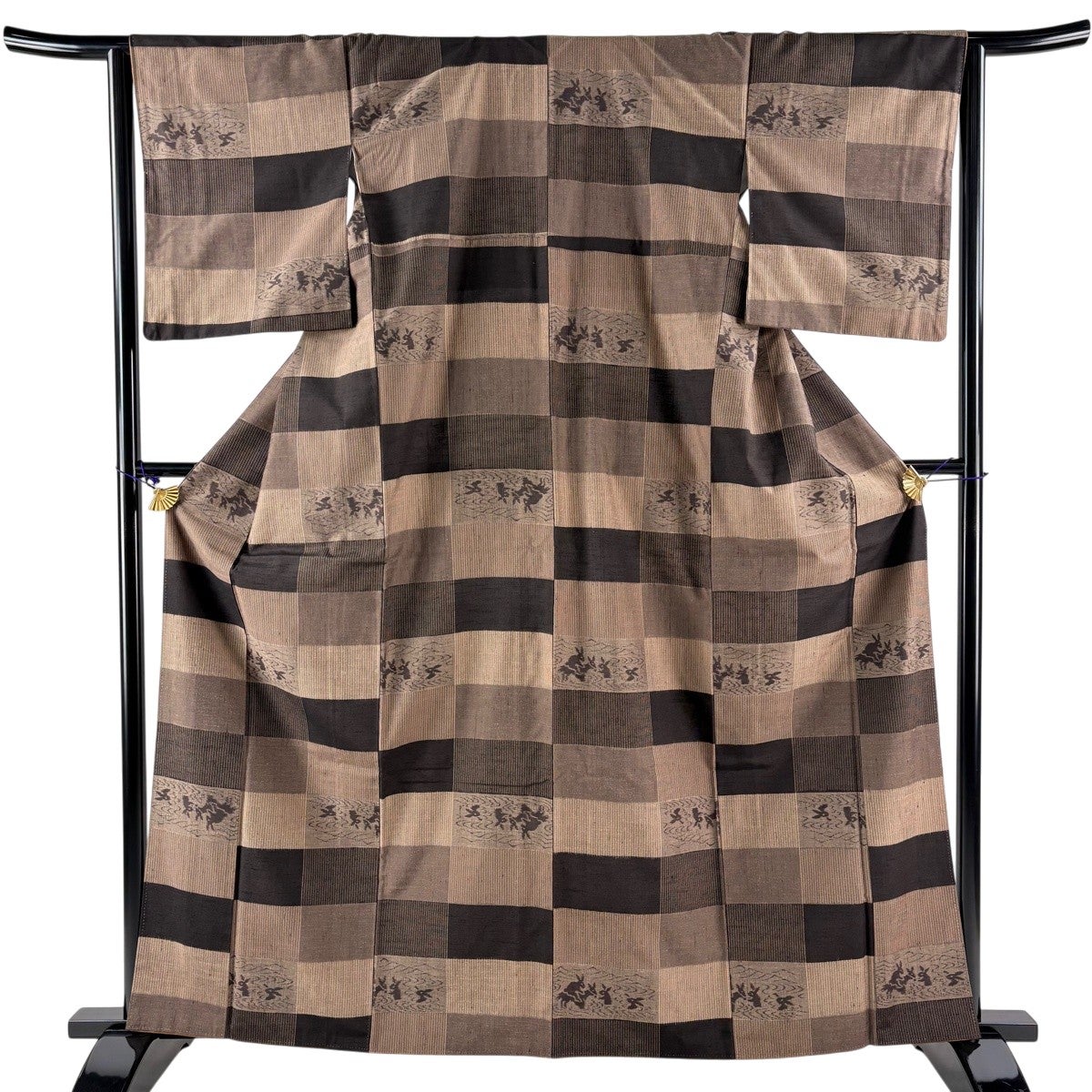 【美品】 小紋 身丈164.5cm 裄丈68cm L 袷 うさぎ 竹縞 焦茶色 正絹 逸品