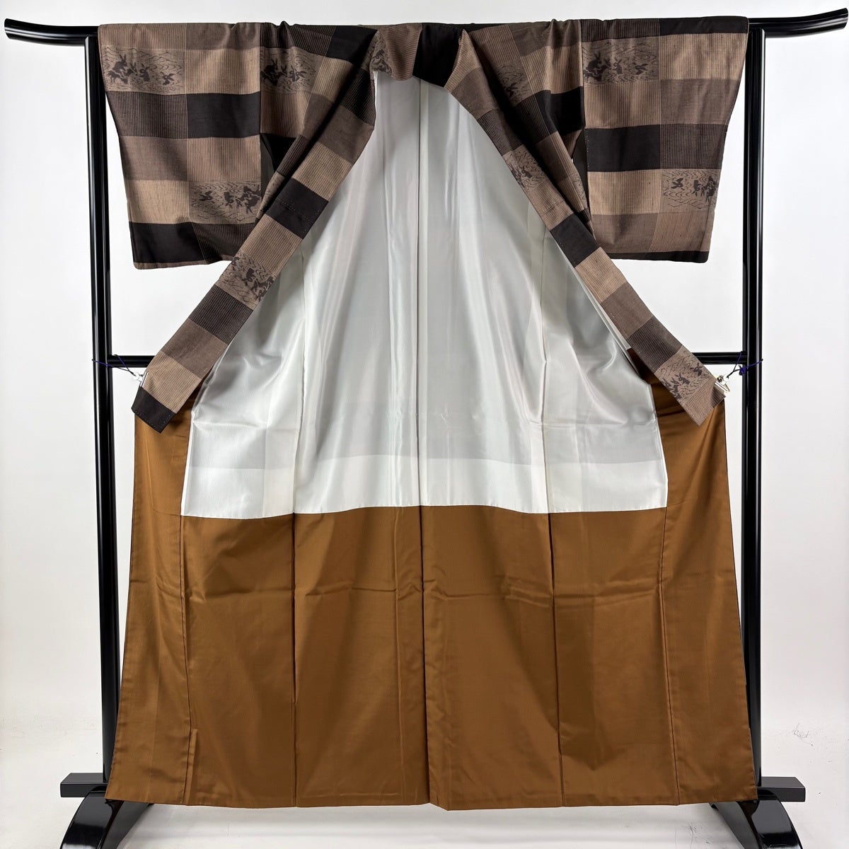 付下げ 身丈160cm 裄丈68cm L 袷 うさぎ 芝 箔 絞り 焦茶色 正絹 名品