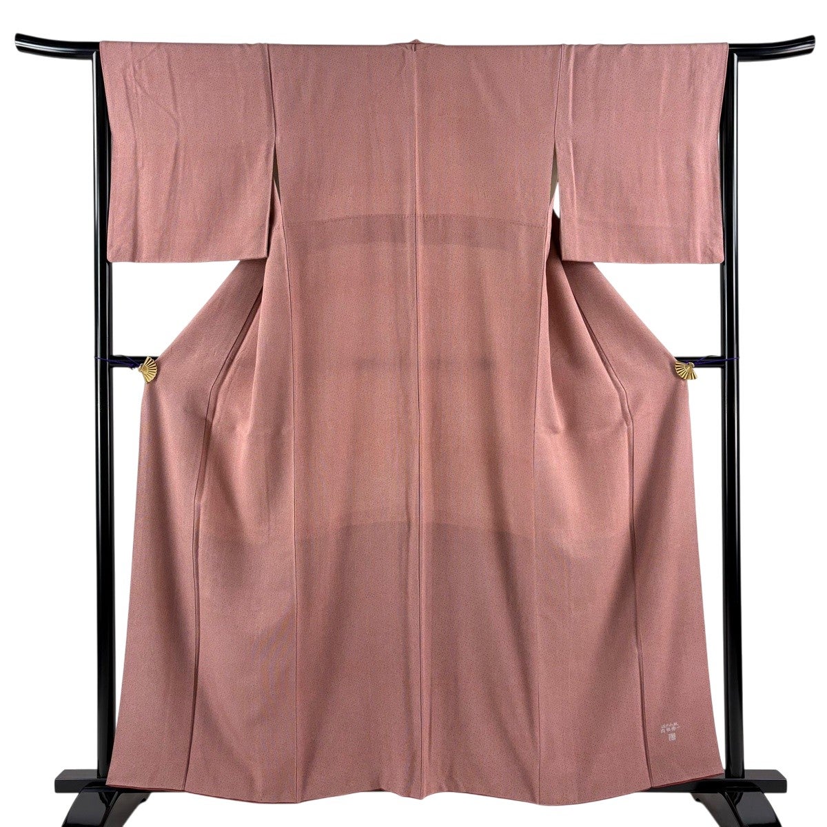 江戸小紋 身丈152cm 裄丈62cm S 袷 落款あり 万筋 えんじ色 正絹 秀品 一つ紋