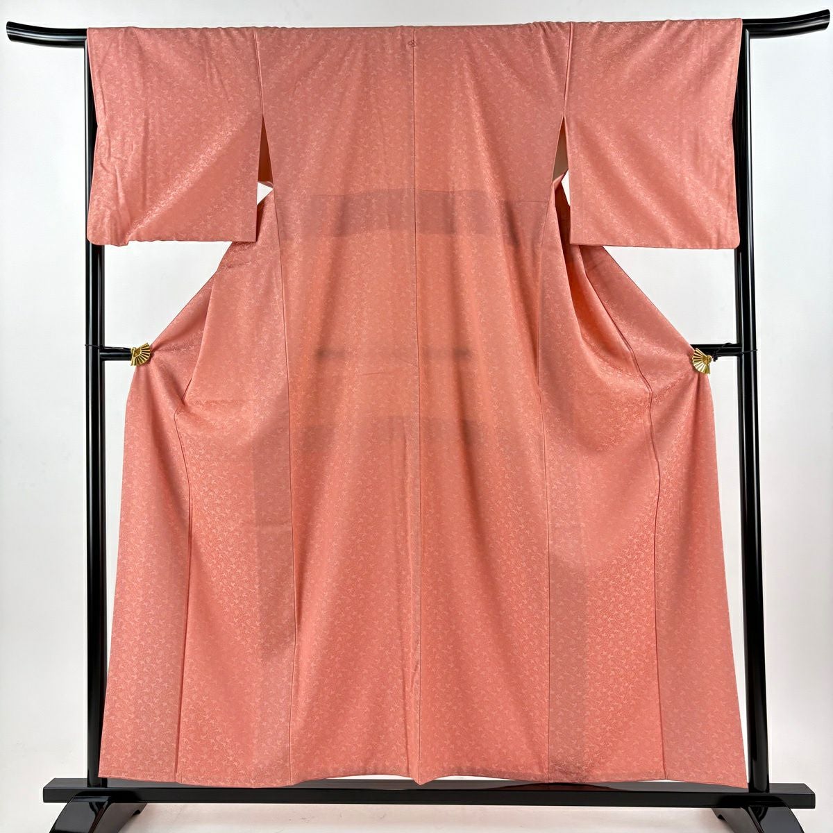 70%OFF お召 身丈157.5cm 裄丈66cm M 袷 葡萄唐草 ピンク 正絹 名品 一つ紋 K70