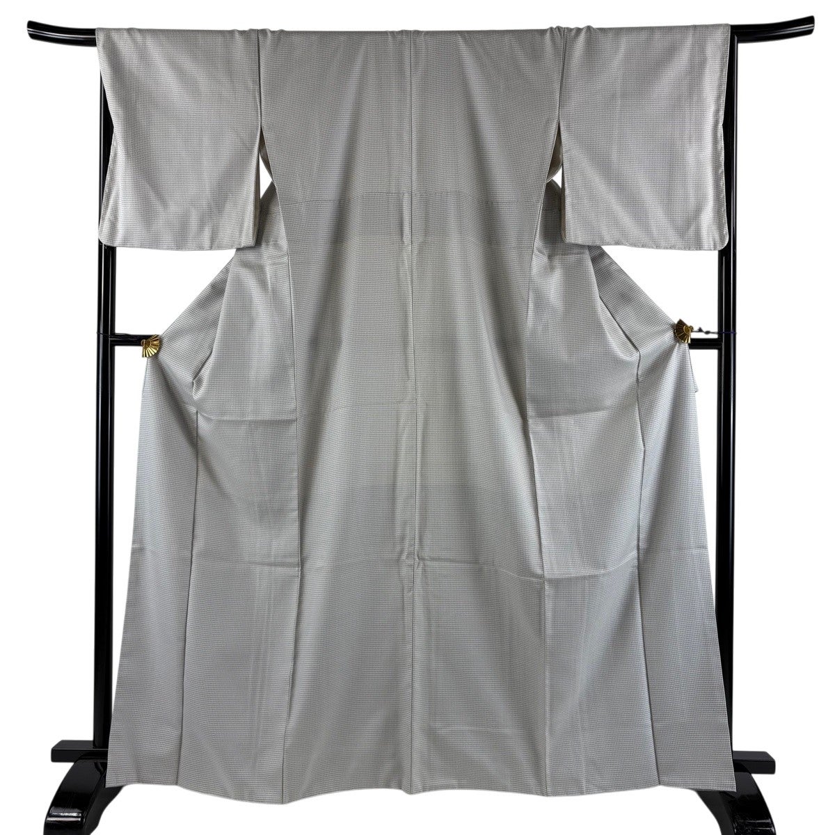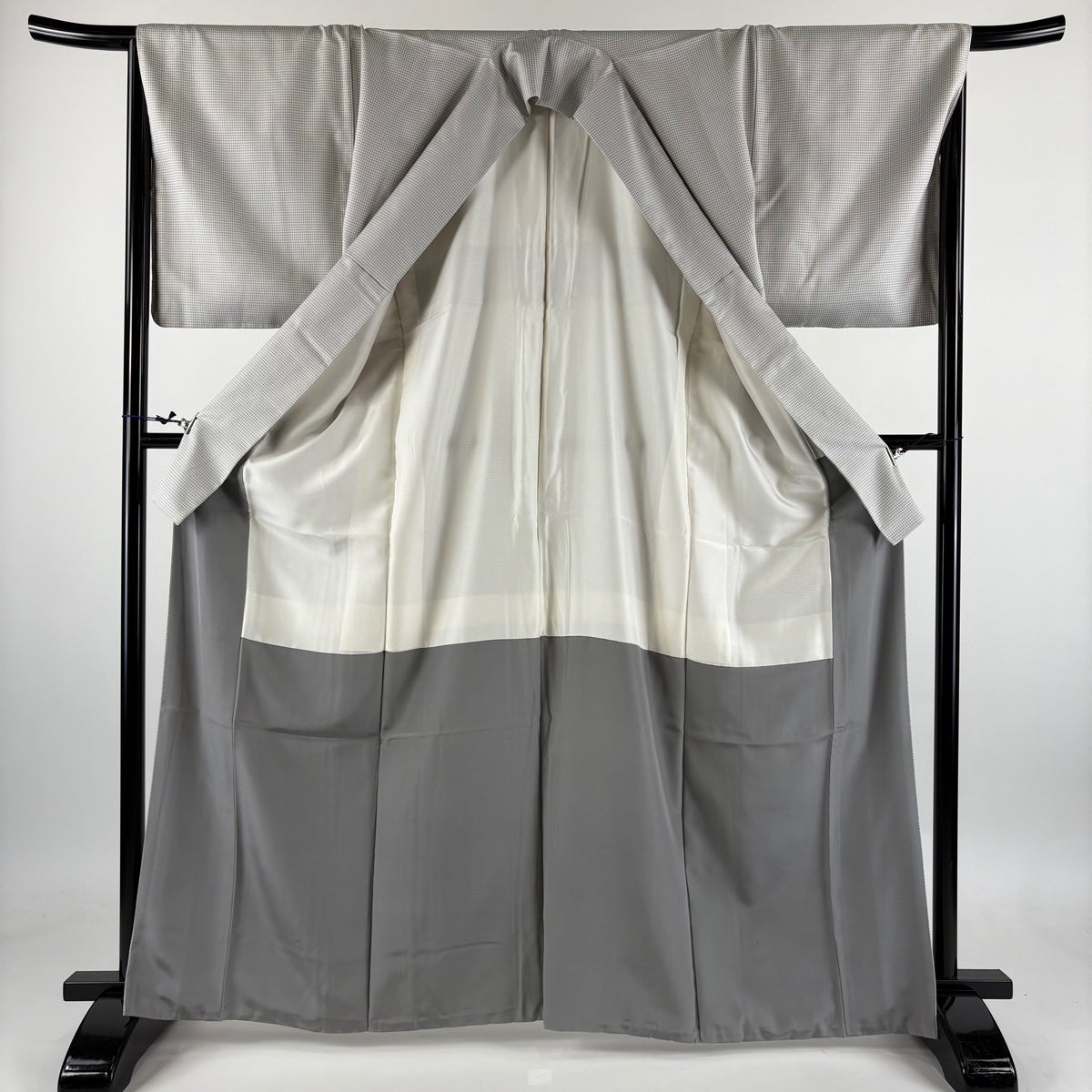 40%OFF お召 身丈153cm 裄丈62cm S 袷 彩かさね 証紙あり 格子 灰茶 正絹 逸品 K30