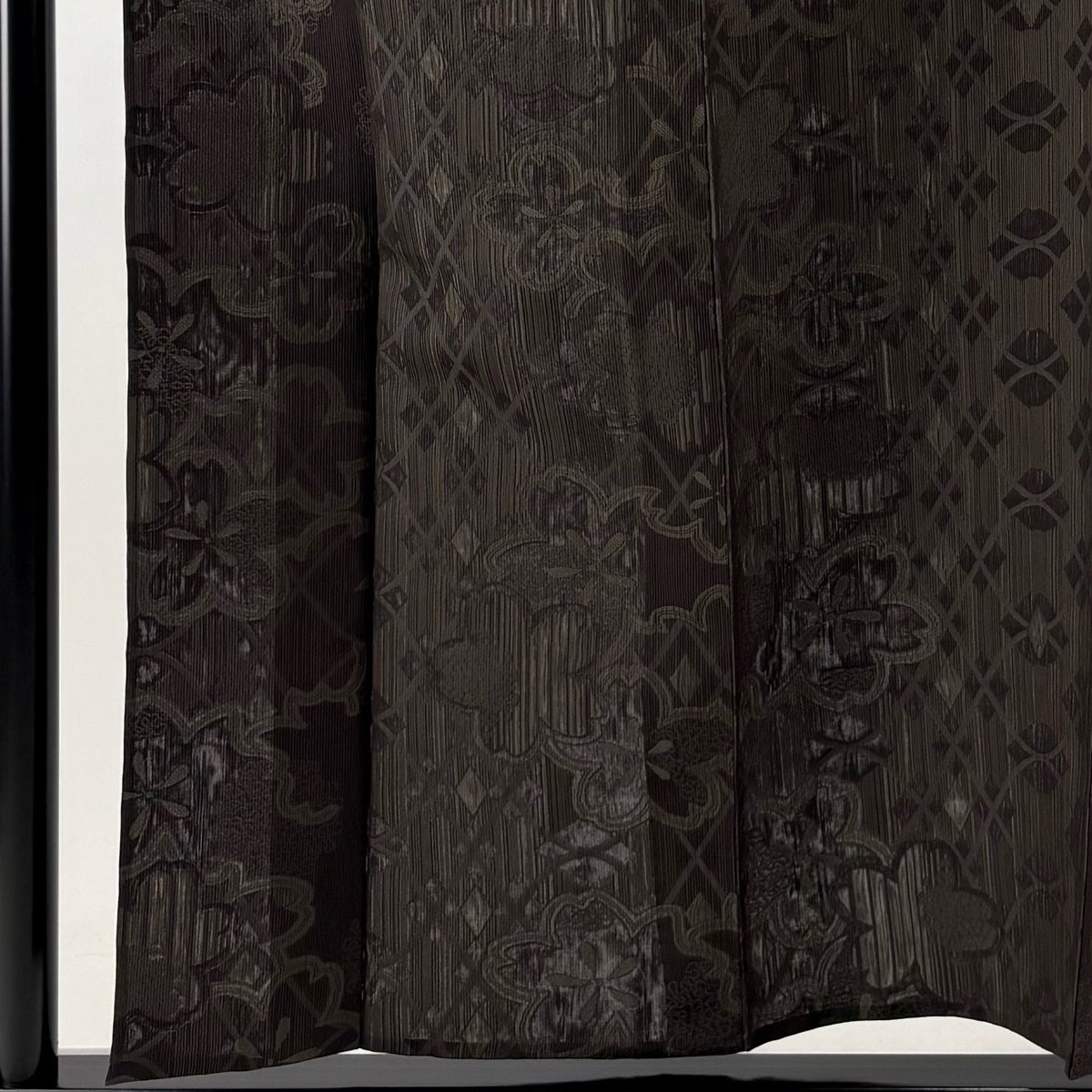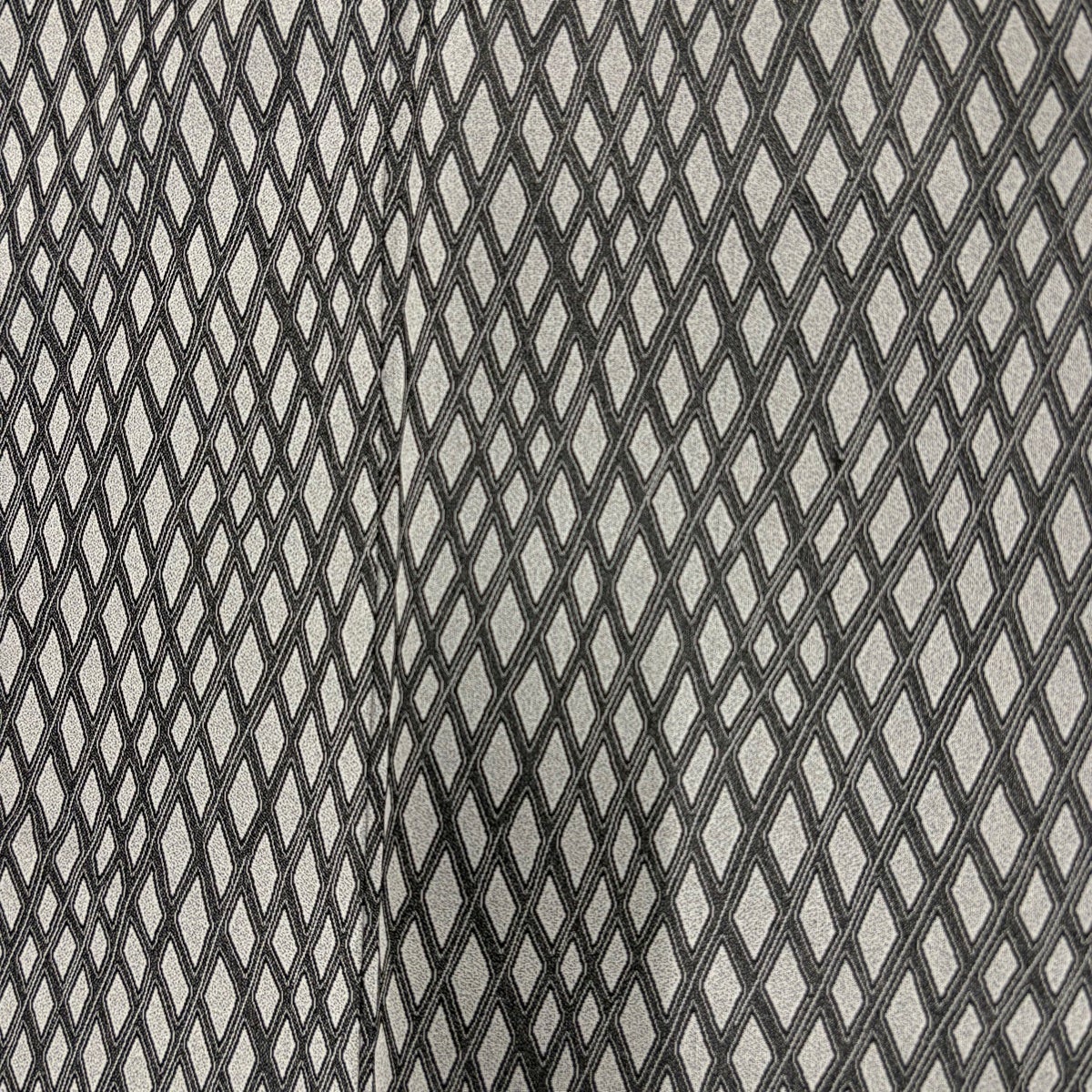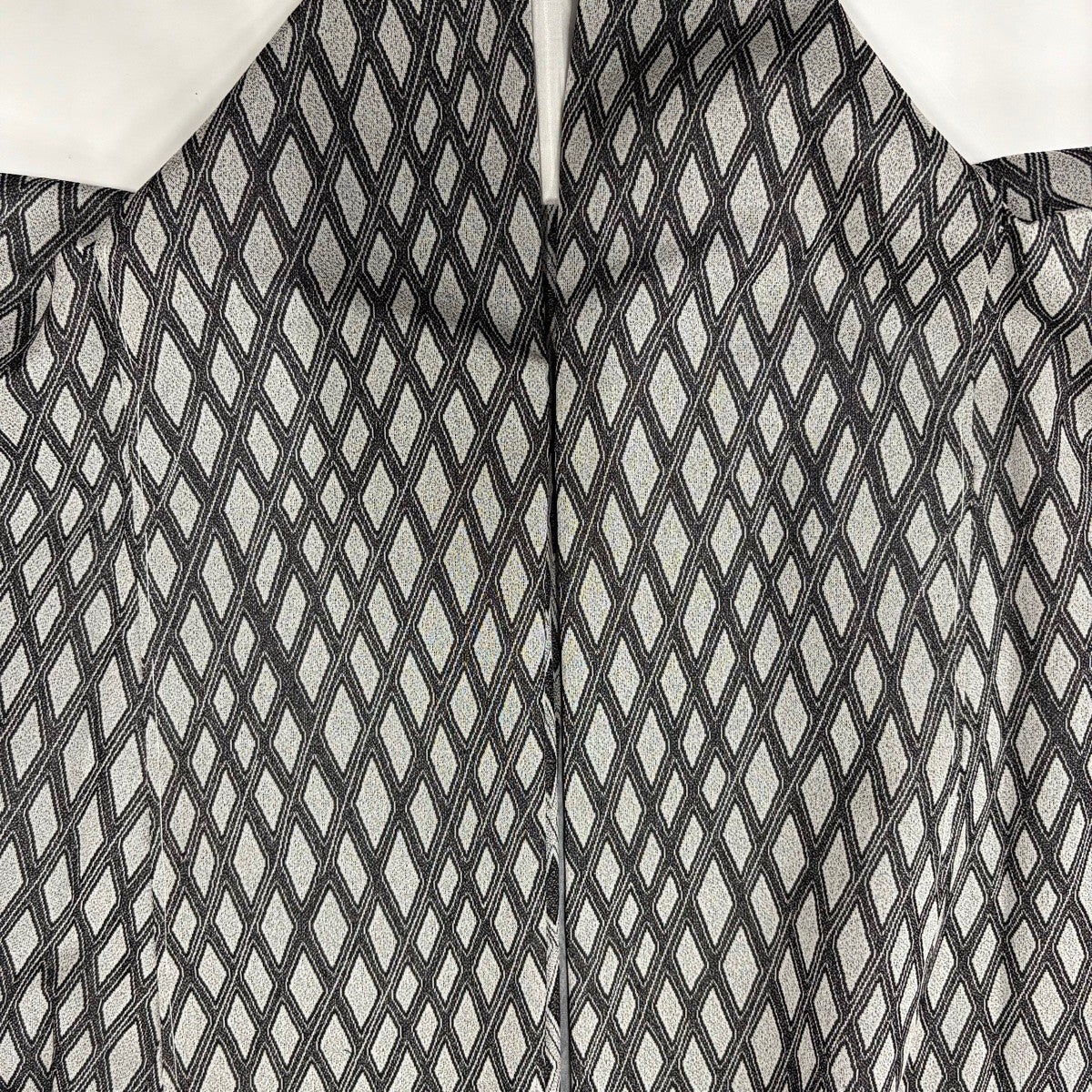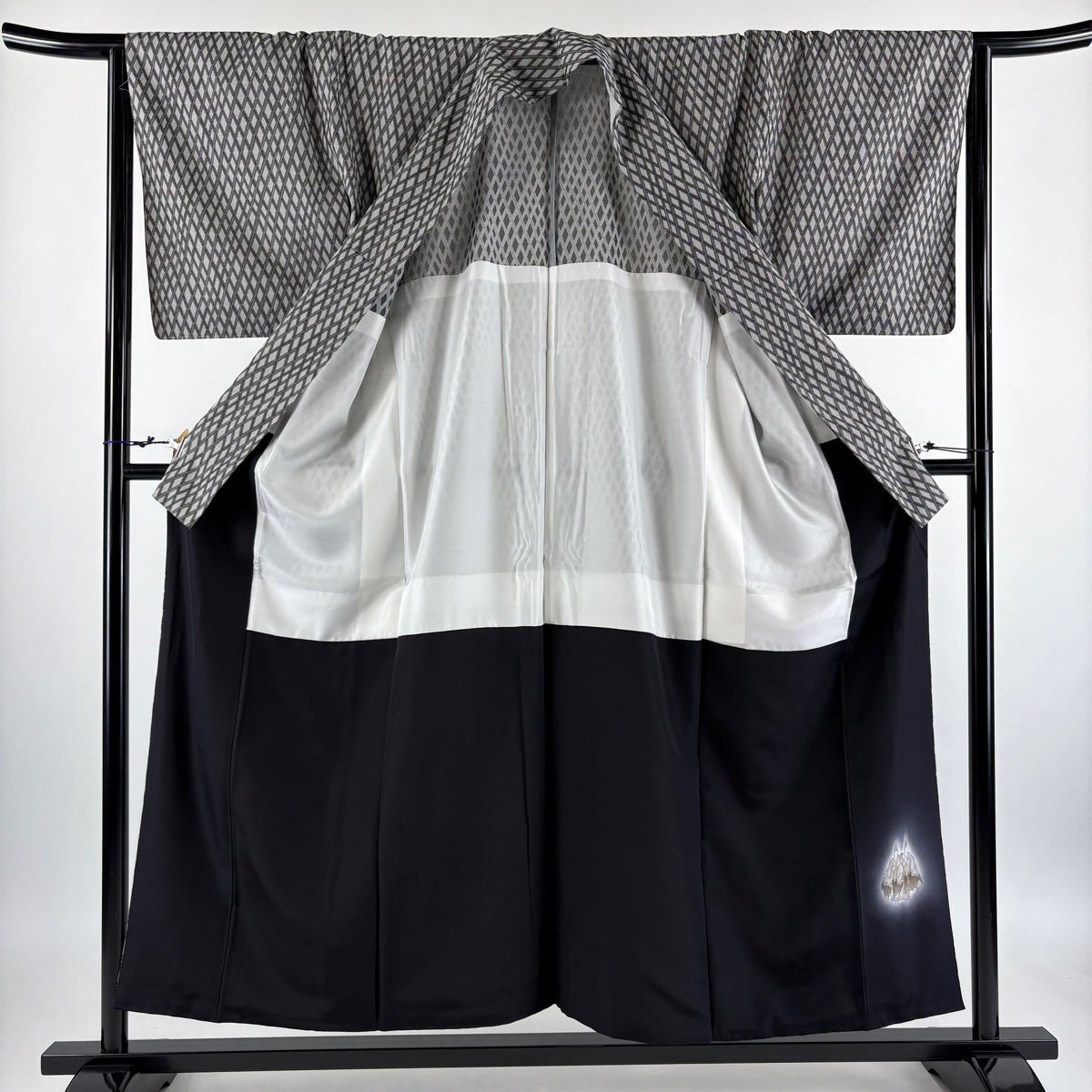 50%OFF 【美品】 お召 身丈163cm 裄丈65.5cm M 袷 幾何学模様 黒 正絹 逸品 K50