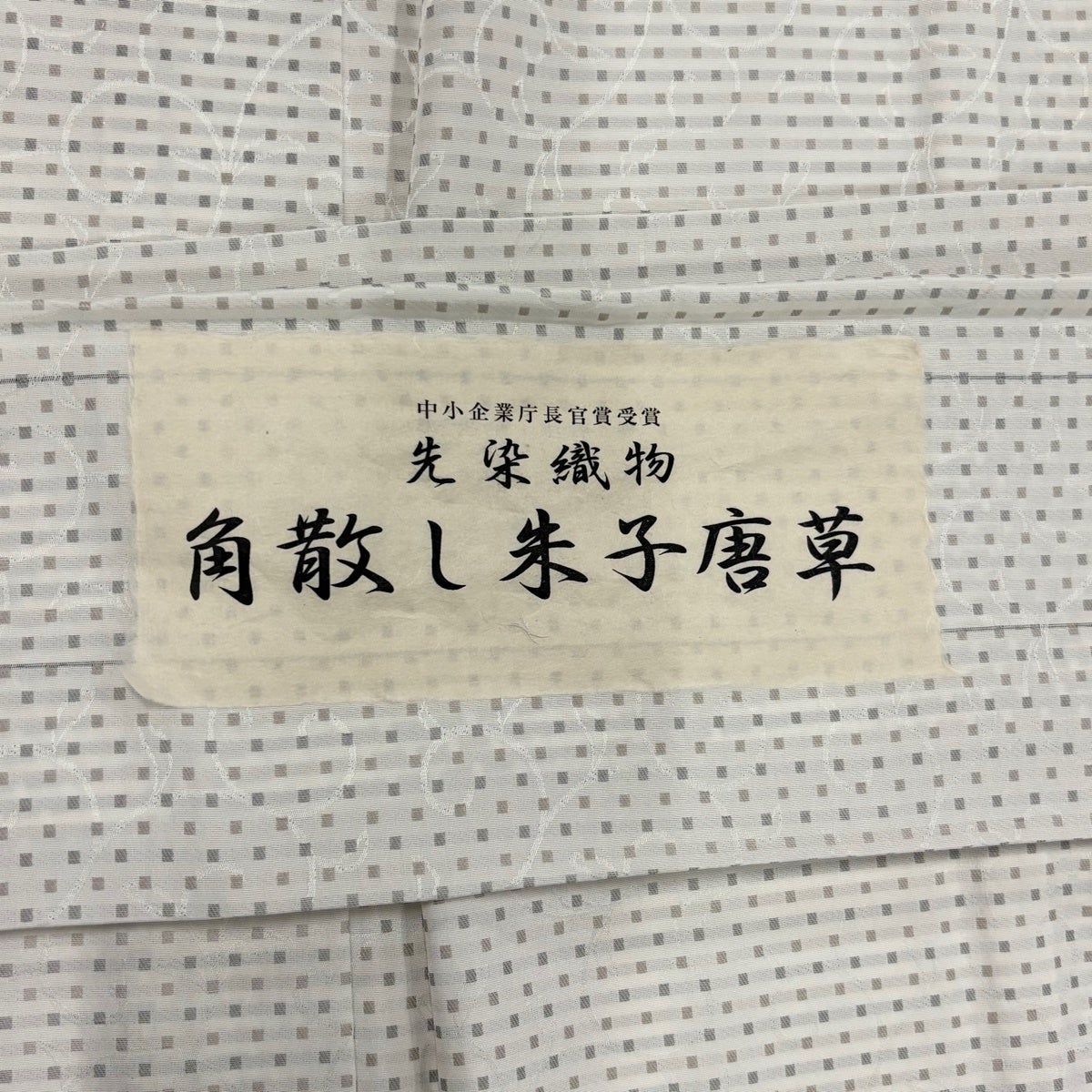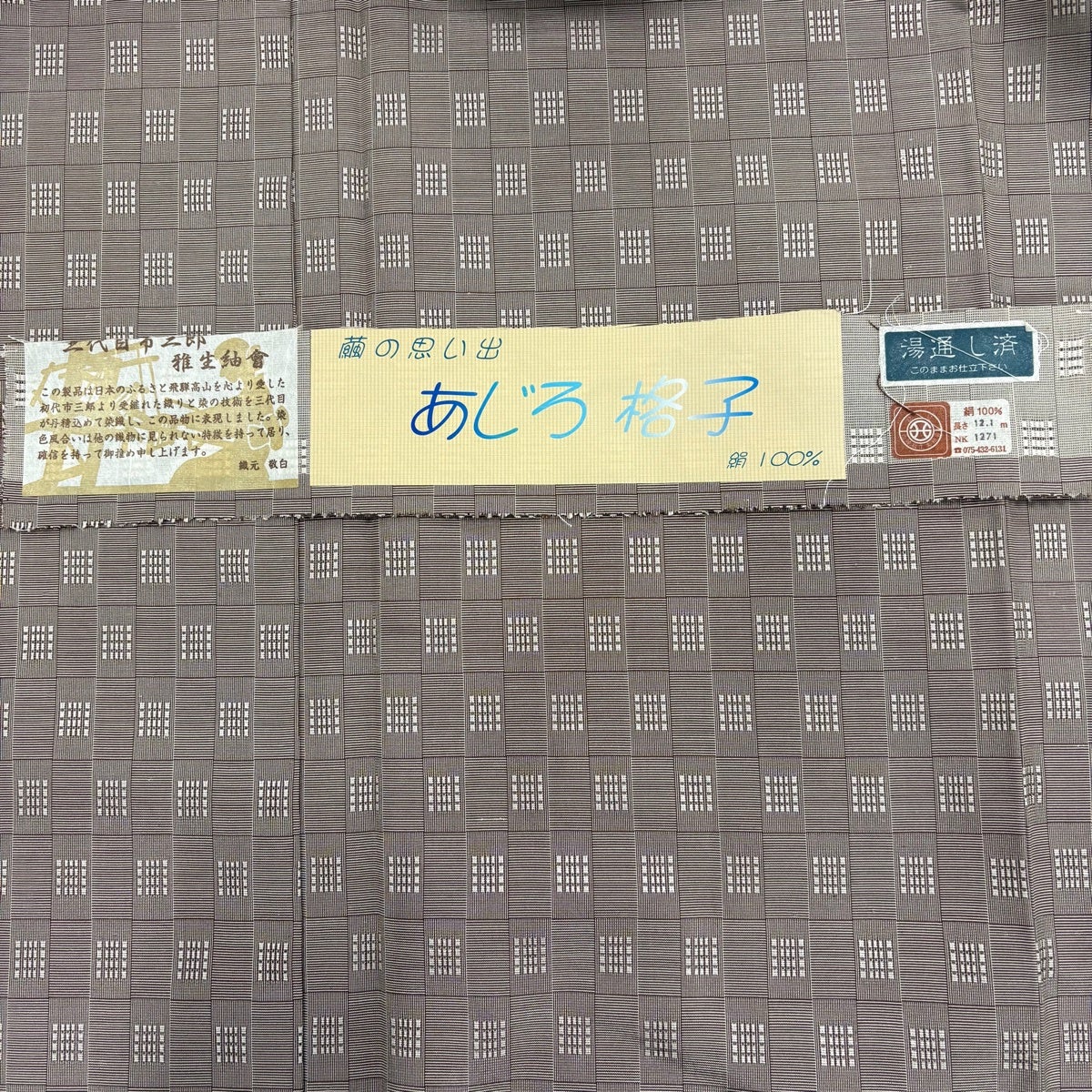 30%OFF 【美品】 お召 身丈157.5cm 裄丈61cm S 薄物 紗 幾何学模様 灰茶 正絹 秀品 K30