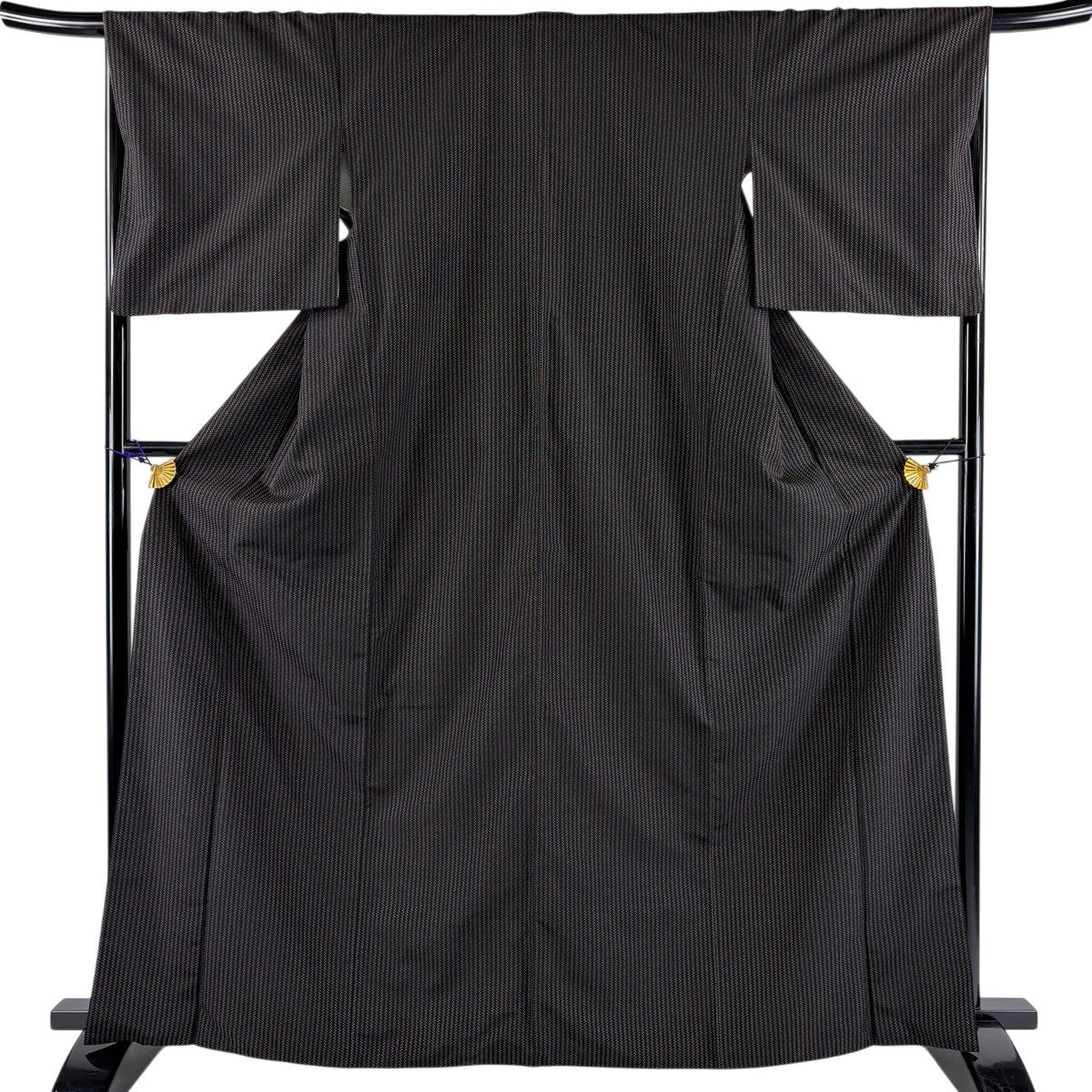20%OFF 【美品】 お召 身丈162cm 裄丈62.5cm S 単衣 斜め格子 墨色 正絹 逸品 K30