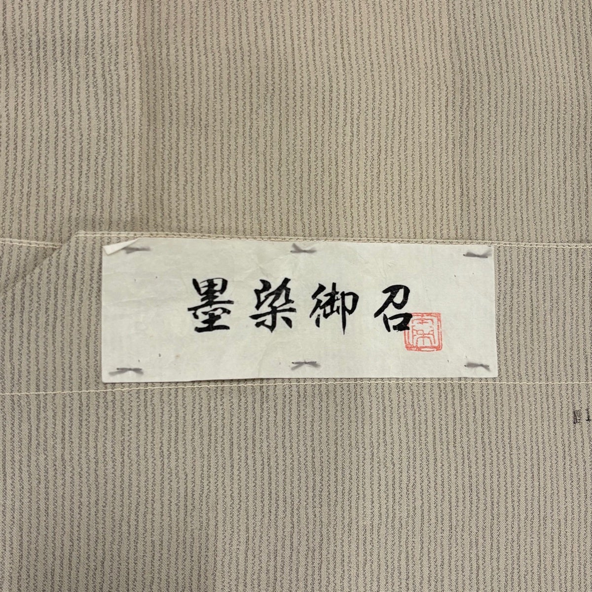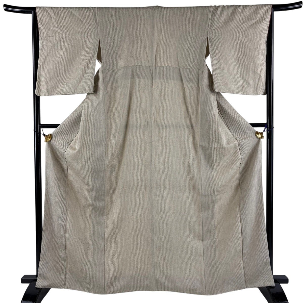 20%OFF 【美品】 お召 身丈160cm 裄丈68cm L 袷 背抜き 地紋 ベージュ 正絹 逸品 K30