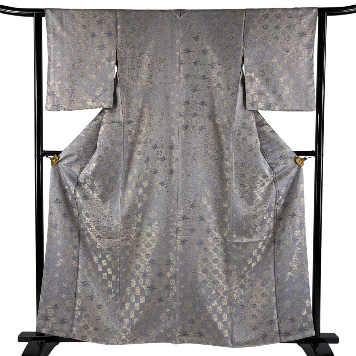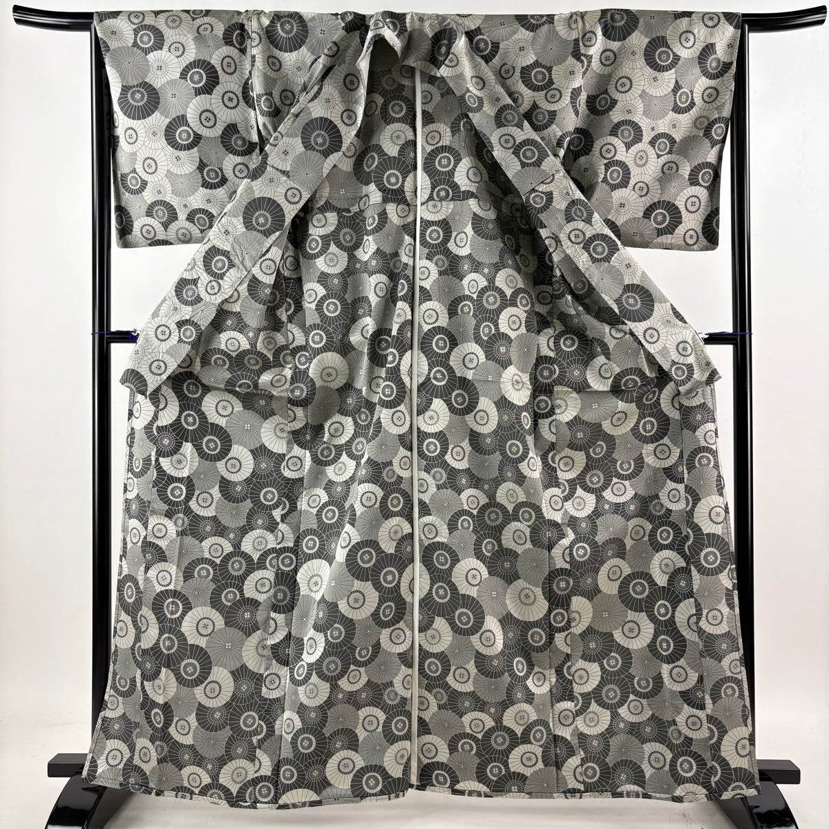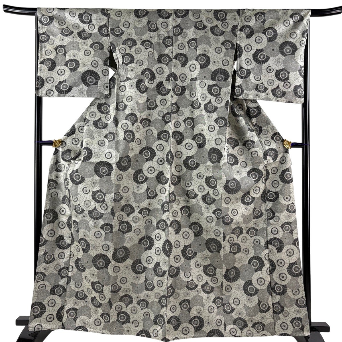 20%OFF 【美品】 お召 身丈169.5cm 裄丈68.5cm L 袷 幾何学模様 灰色 正絹 逸品 K30