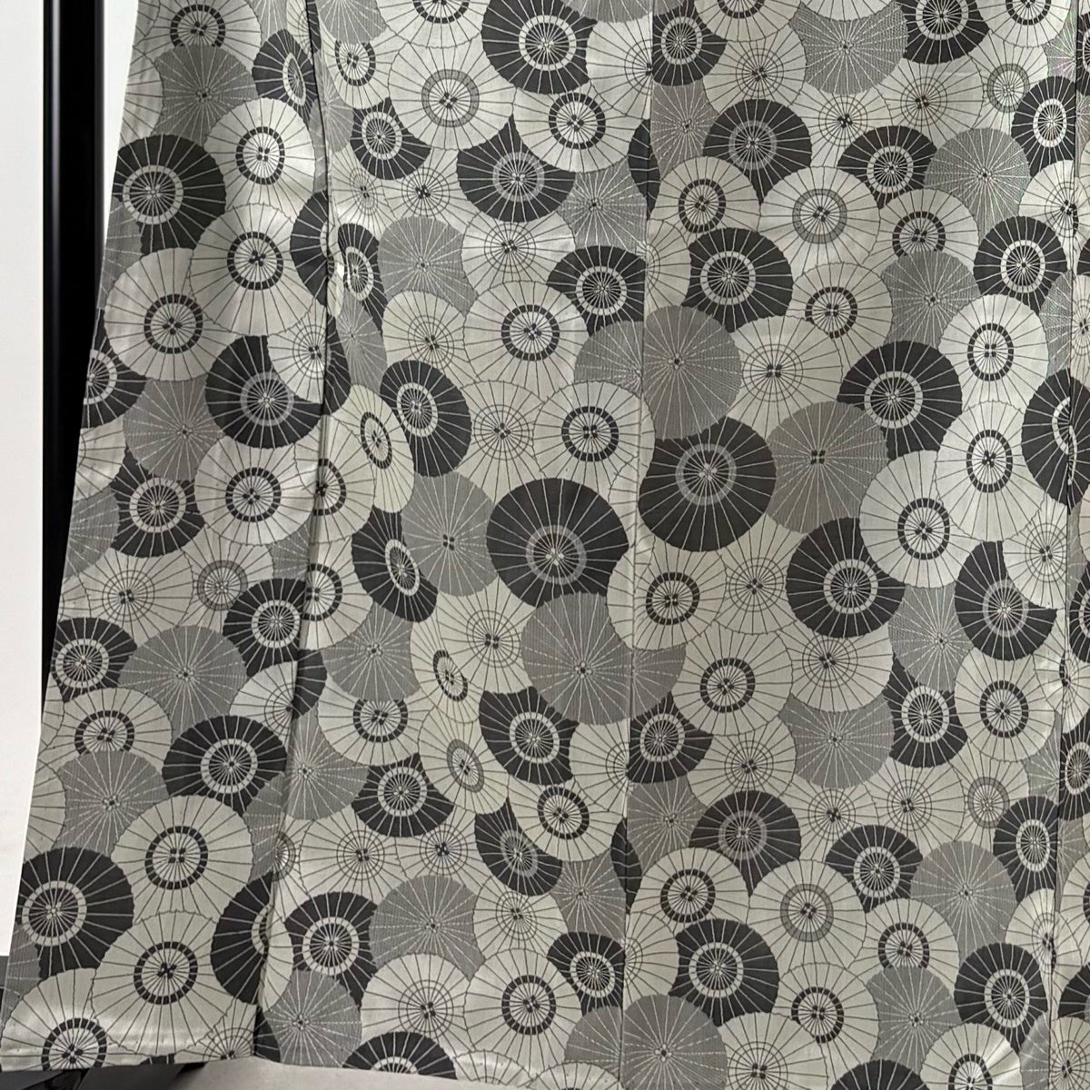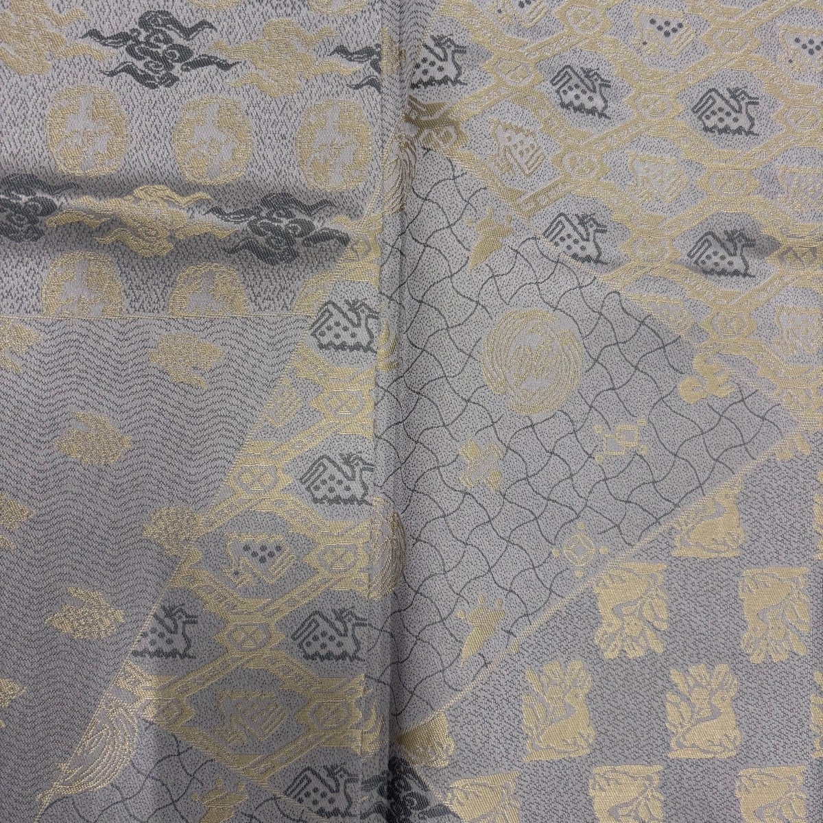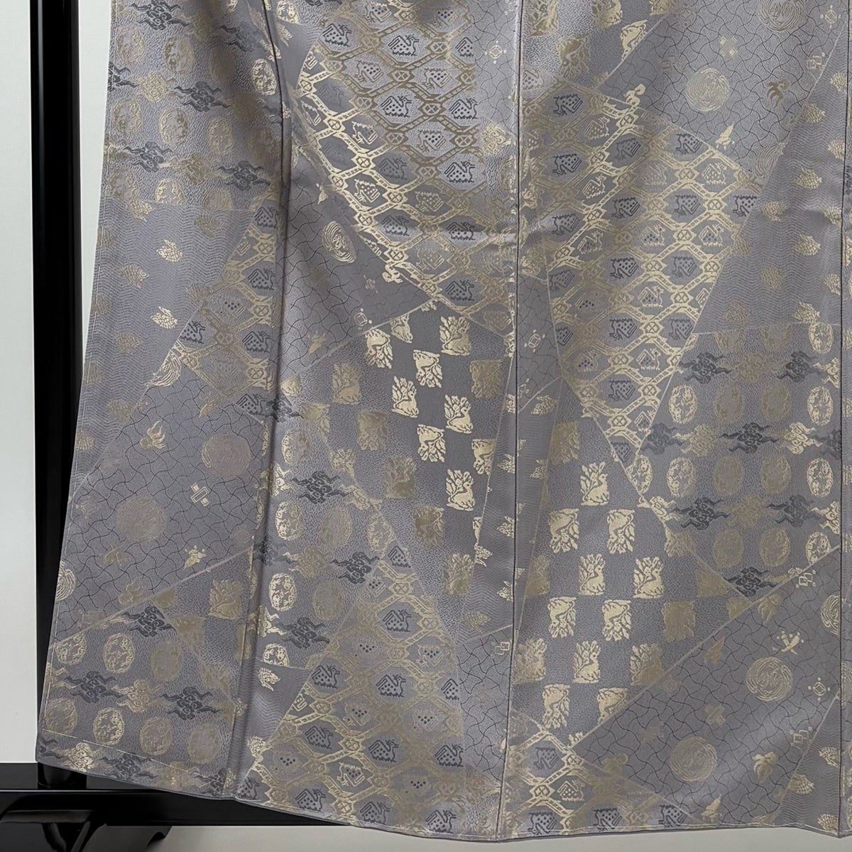 20%OFF 【美品】 お召 身丈169.5cm 裄丈68.5cm L 袷 幾何学模様 灰色 正絹 逸品 K30