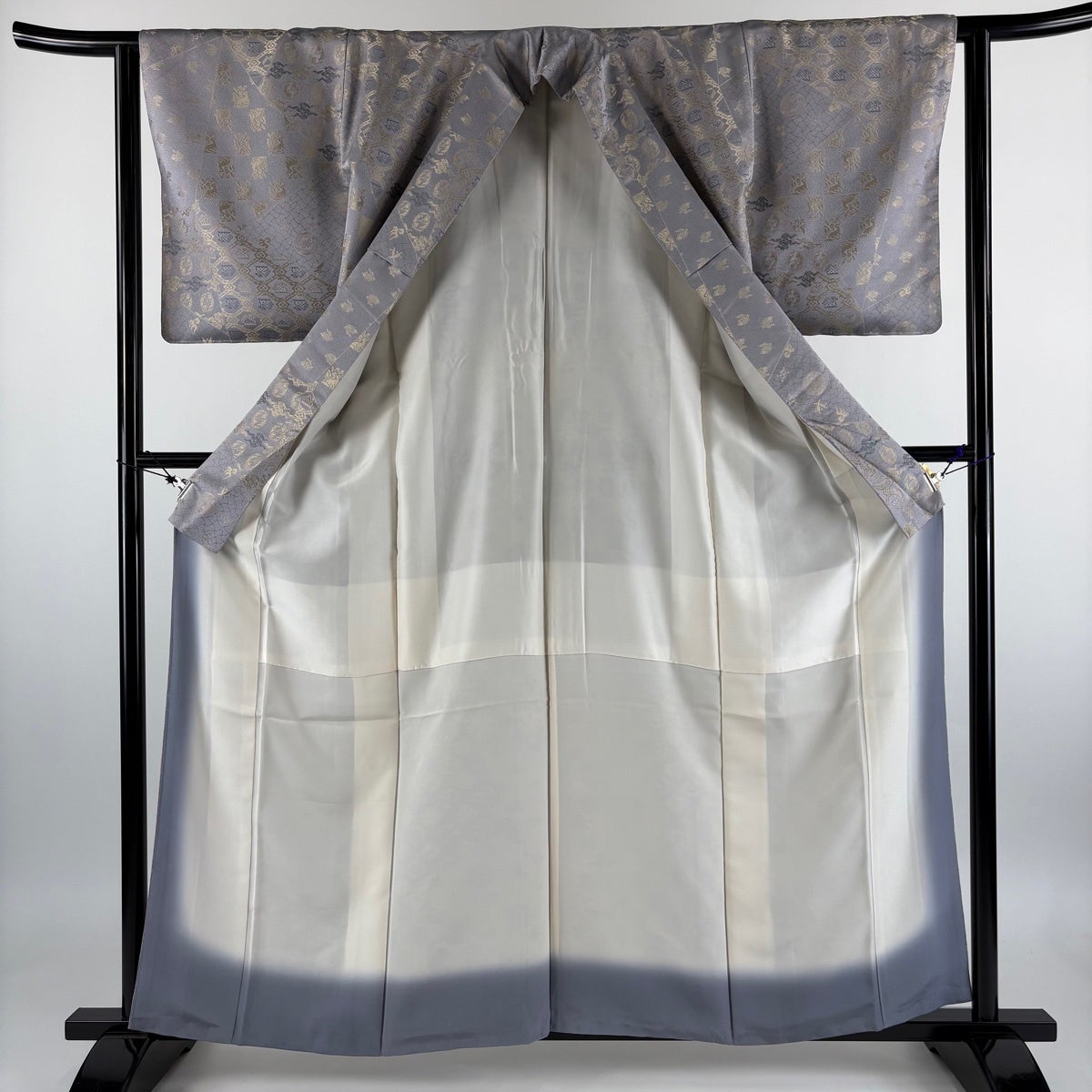 【美品】 お召 身丈160.5cm 裄丈62cm S 袷 龍村晋 落款あり 有栖川文 花うさぎ 灰紫 正絹 逸品