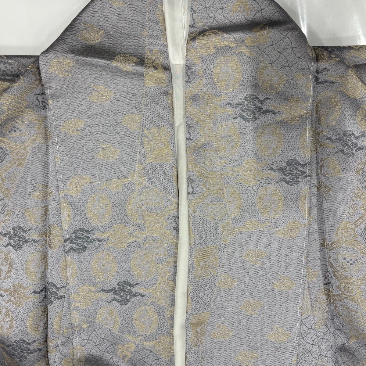 20%OFF 【美品】 お召 身丈160cm 裄丈64cm M 単衣 宝尽くし 薄茶色 正絹 逸品 K30