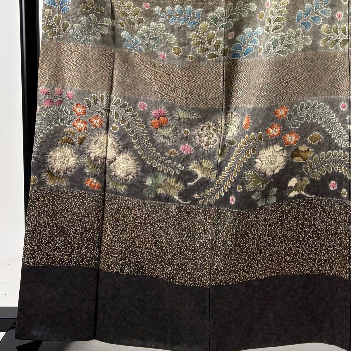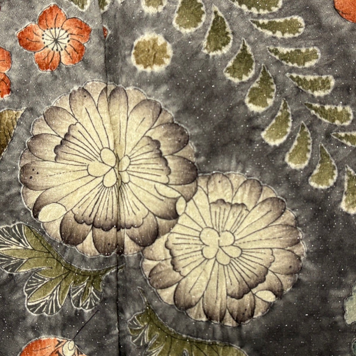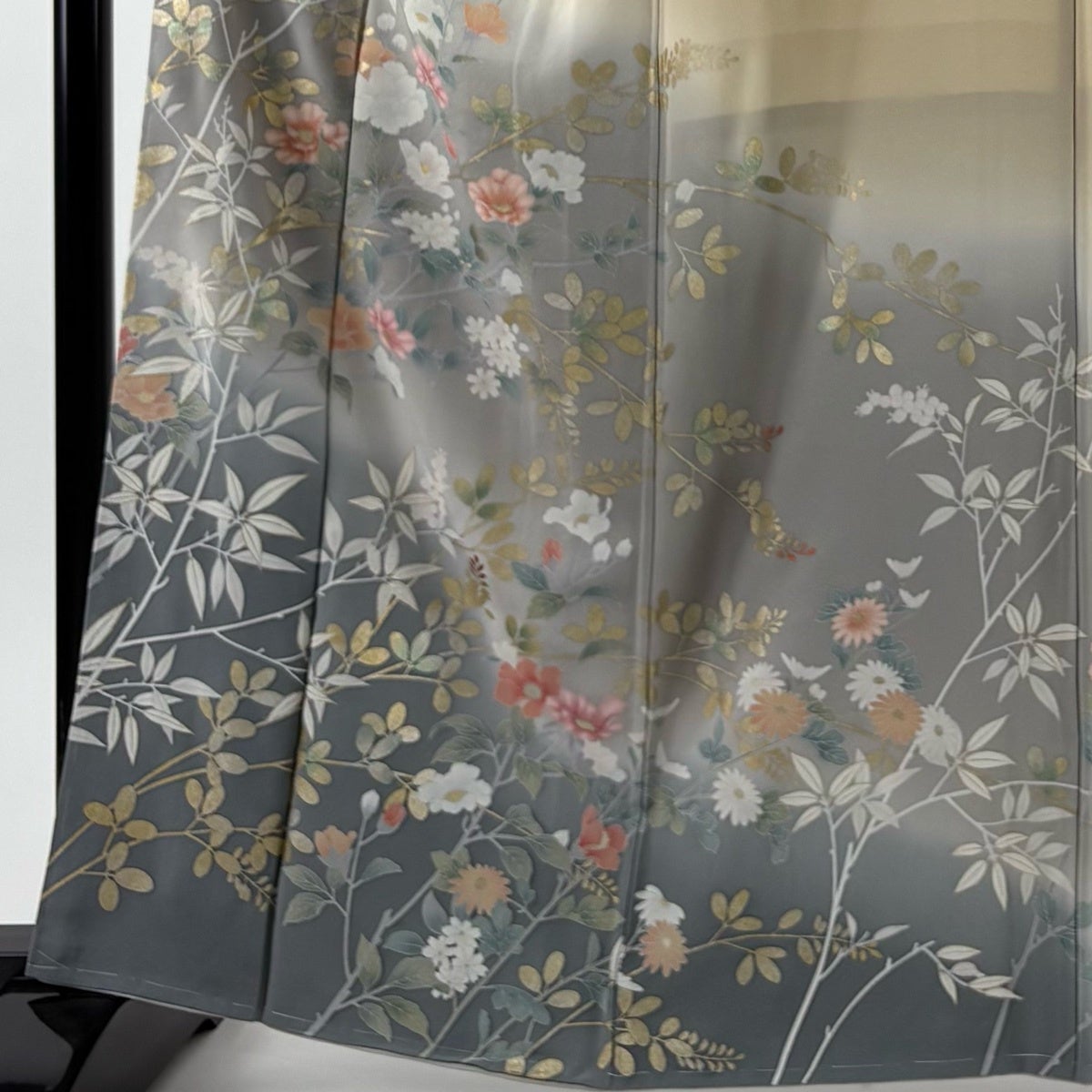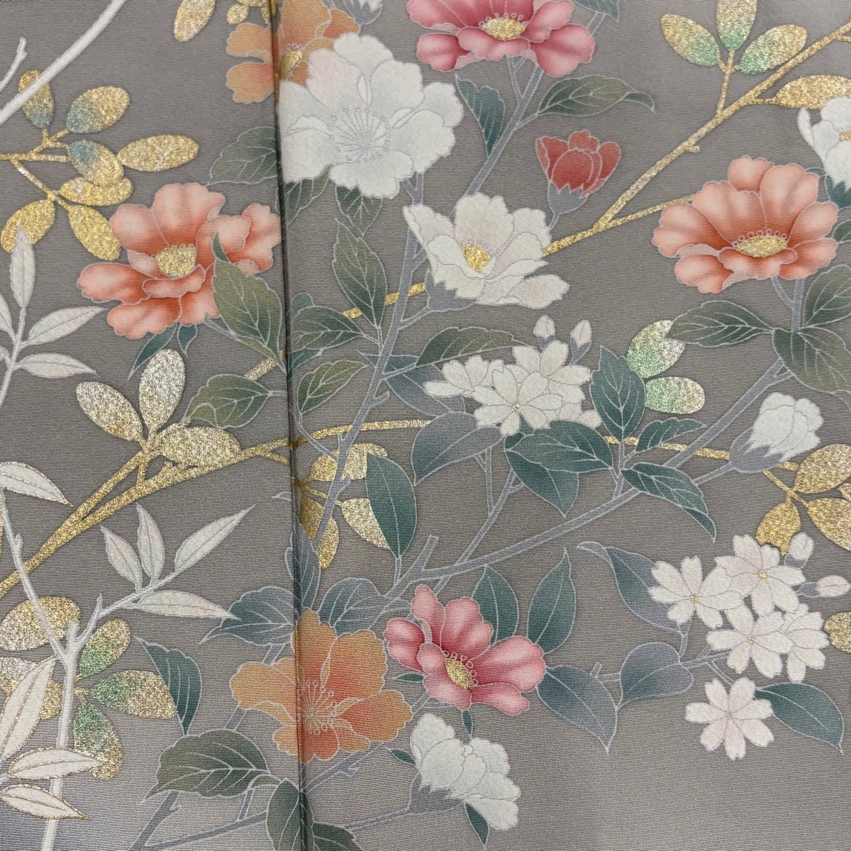訪問着 身丈163.5cm 裄丈66cm M 袷 枝花 萩 金銀彩 ぼかし 灰色 正絹 名品