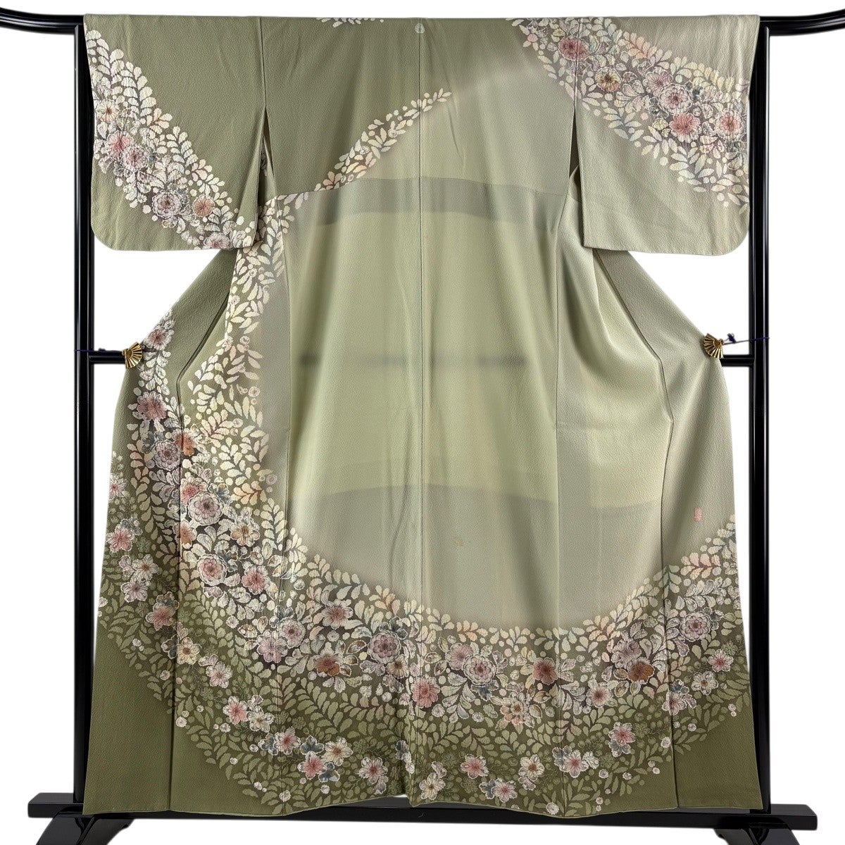 【美品】 付下げ 身丈163cm 裄丈62.5cm S 袷 久保田一竹工房 落款あり 地紋 銀通し 裾ぼかし よもぎ色 正絹 逸品 一つ紋