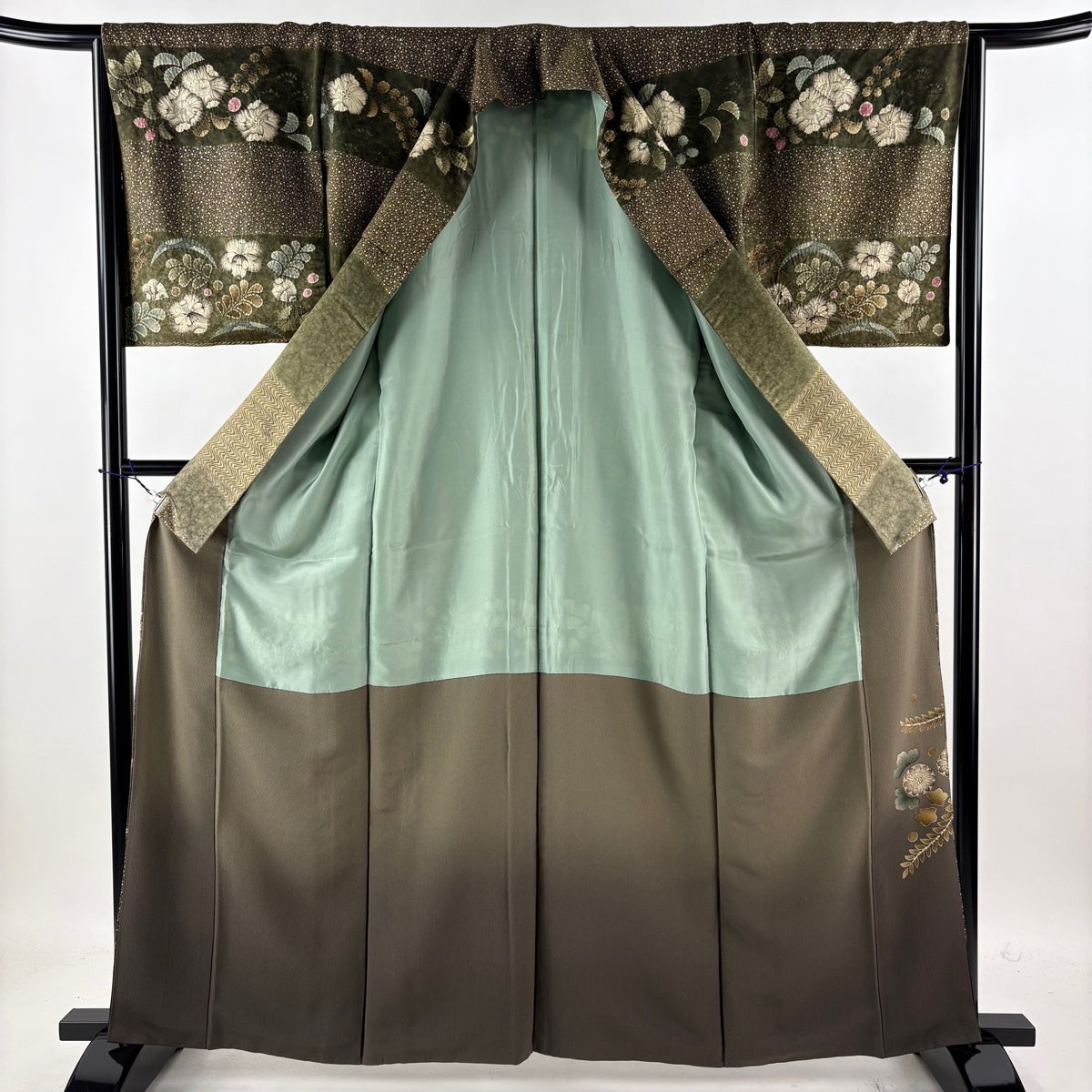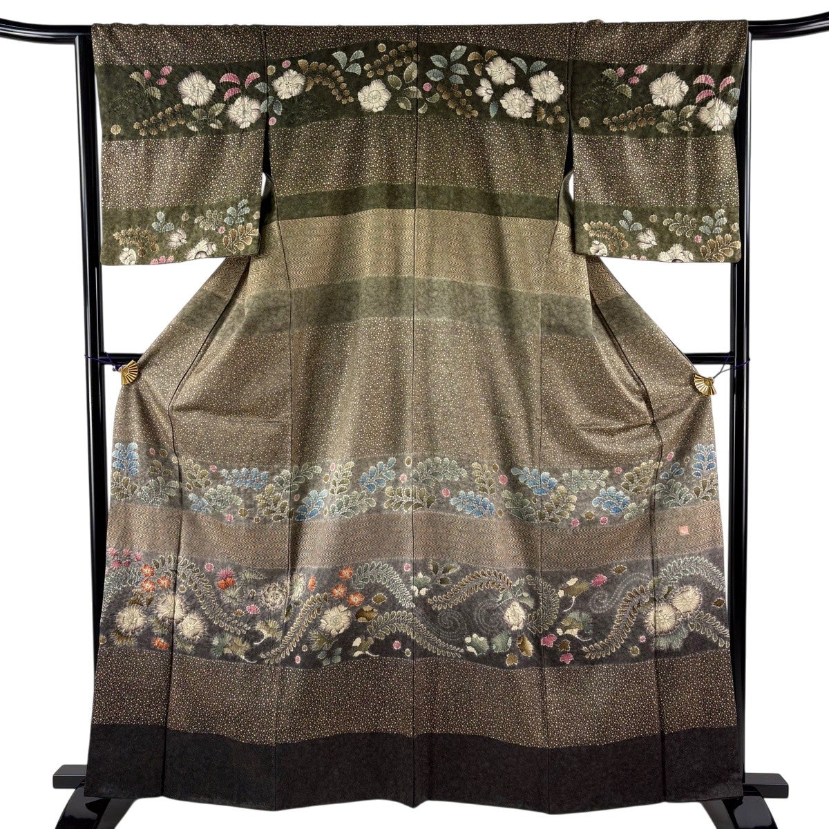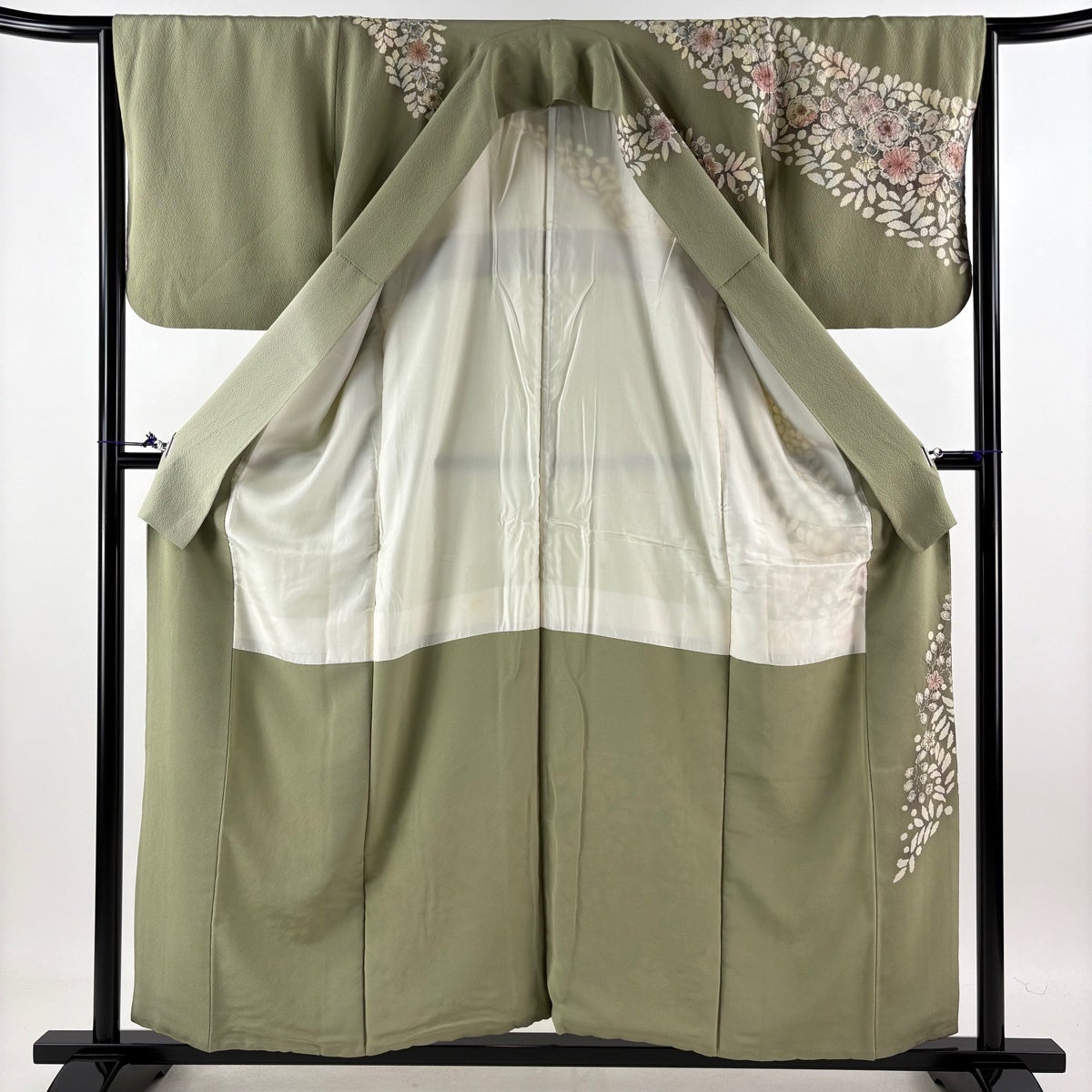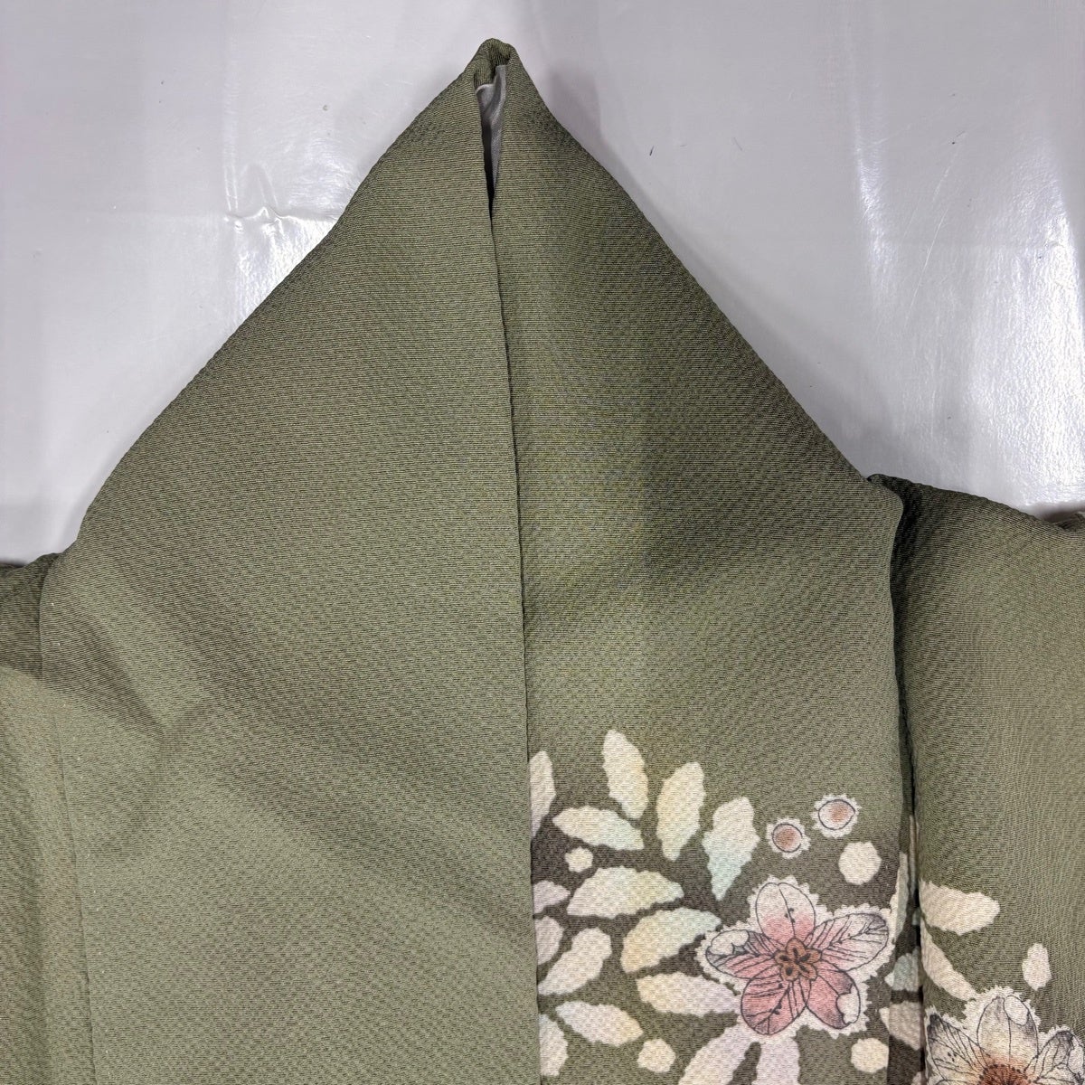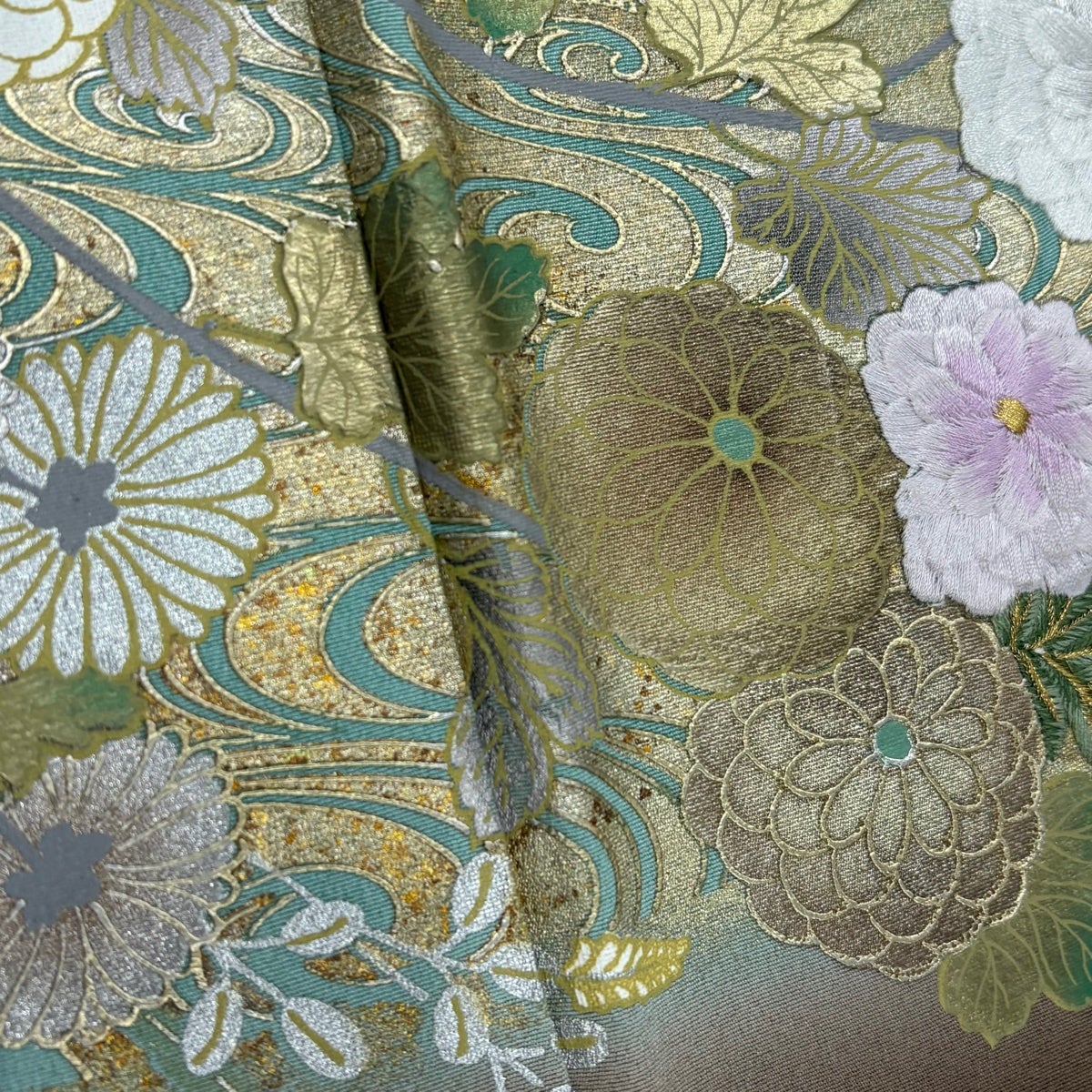 訪問着 身丈157cm 裄丈65cm M 袷 蜀江文 松竹梅 刺繍 鶯色 正絹 逸品 一つ紋