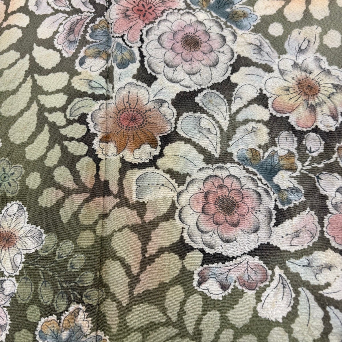 訪問着 身丈157cm 裄丈65.5cm M 袷 落款あり 辻が花 染め分け ぼかし 灰緑 正絹 名品 一つ紋