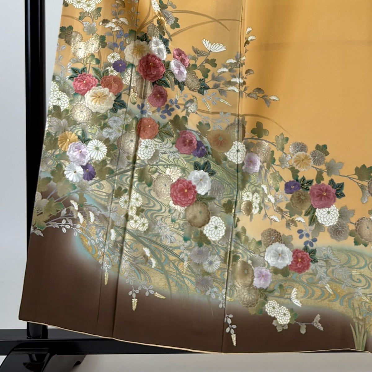付下げ 身丈157cm 裄丈62cm S 袷 百貫石峰 落款あり 草花 霞 ぼかし 薄茶色 正絹 逸品