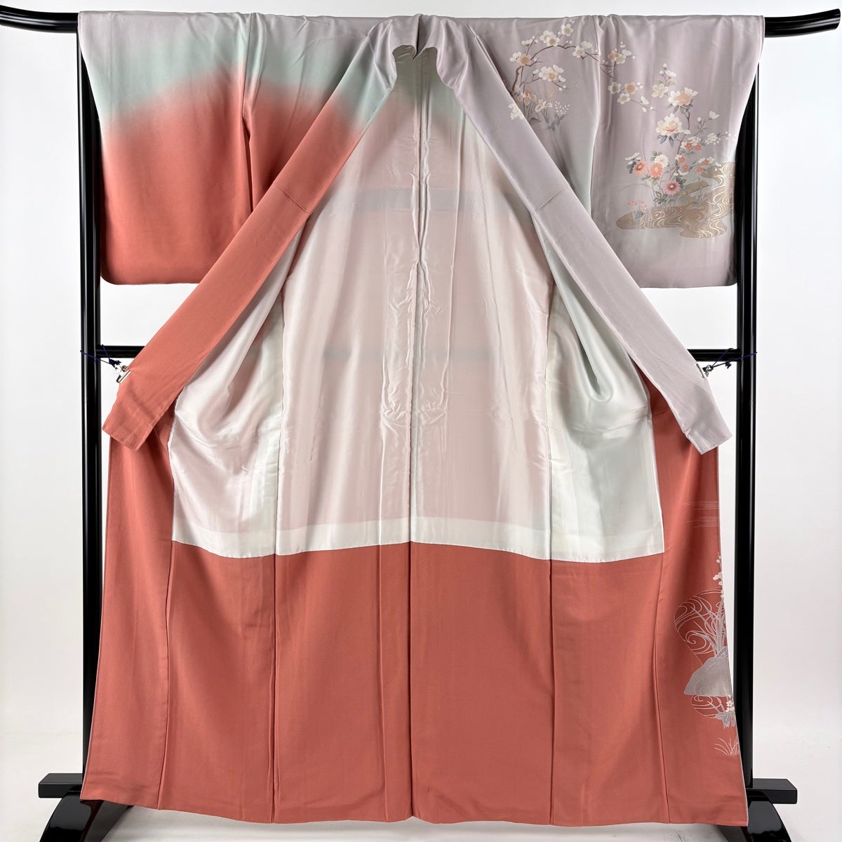 付下げ 身丈169cm 裄丈70cm L 袷 生り物 流水 ぼかし 灰色 正絹 秀品