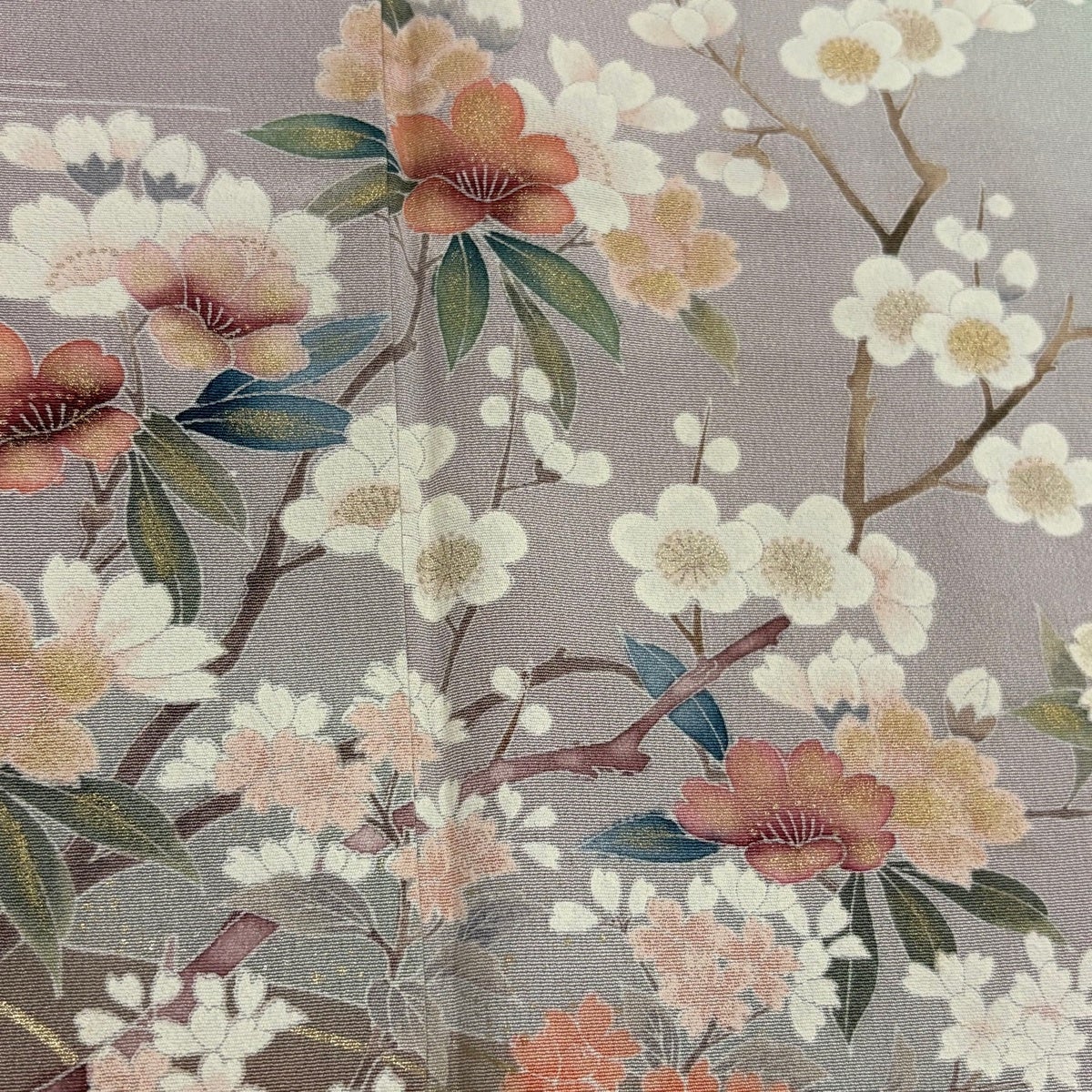 訪問着 身丈163.5cm 裄丈68cm L 袷 枝花 流水 金銀彩 ぼかし 薄紫 正絹 秀品