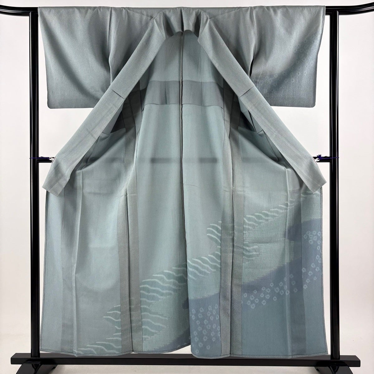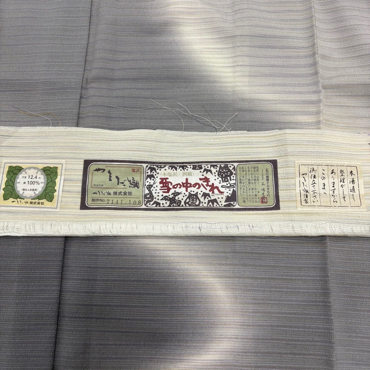 他の画像を見る 20%OFF お召 身丈153cm 裄丈62.5cm S 単衣 本塩沢 鬼しぼ 落款あり 証紙あり 縦縞 青灰色 正絹 逸品 K30 当店通常価格 ¥ 30,800 ¥ 24,640 税込