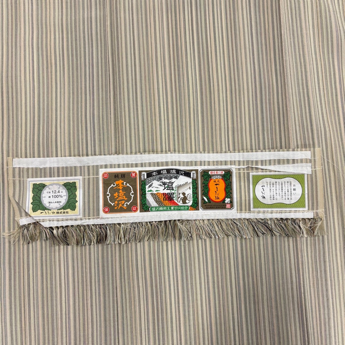 他の画像を見る 20%OFF お召 身丈156cm 裄丈65.5cm M 単衣 本塩沢 やまだ織 雪の中のきれ 証紙あり 花唐草 段縞 ベージュ 正絹 逸品 K30 当店通常価格 ¥ 35,800 ¥ 28,640 税込