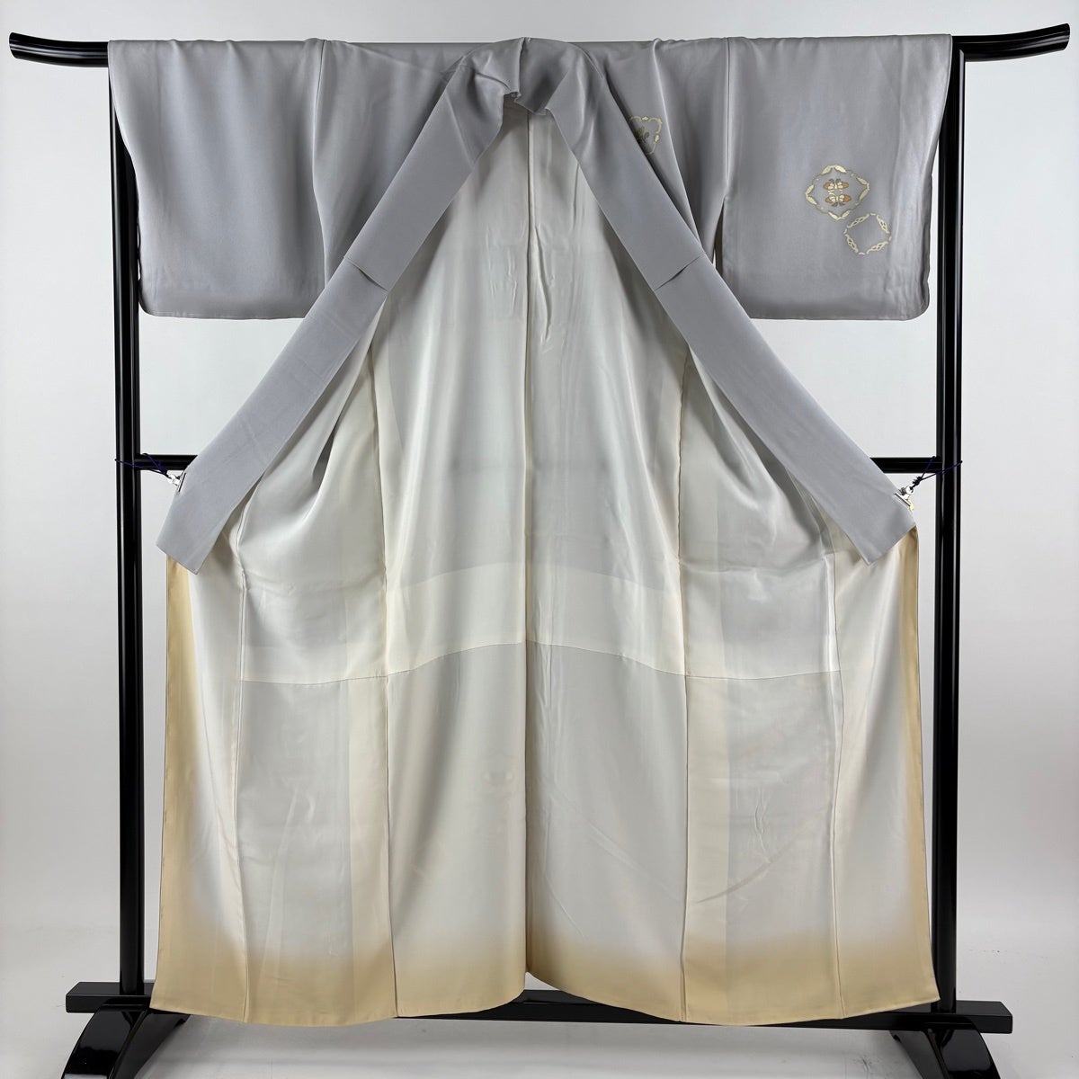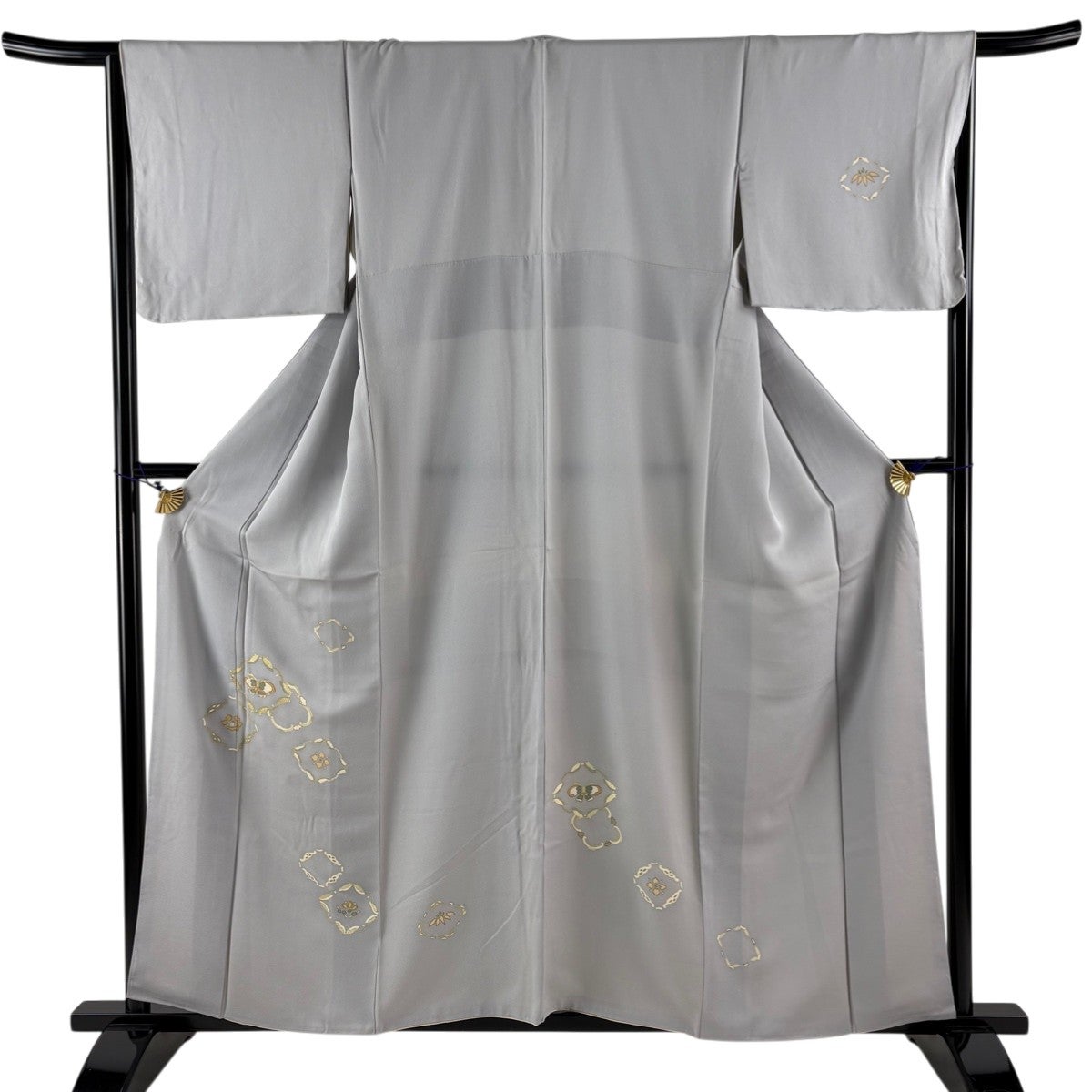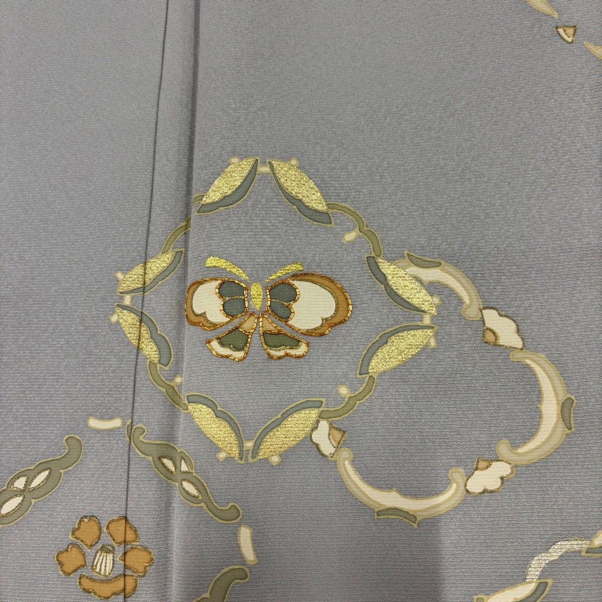 付下げ 身丈157cm 裄丈65.5cm M 袷 花菱 蝶 金糸 金彩 灰色 正絹 秀品