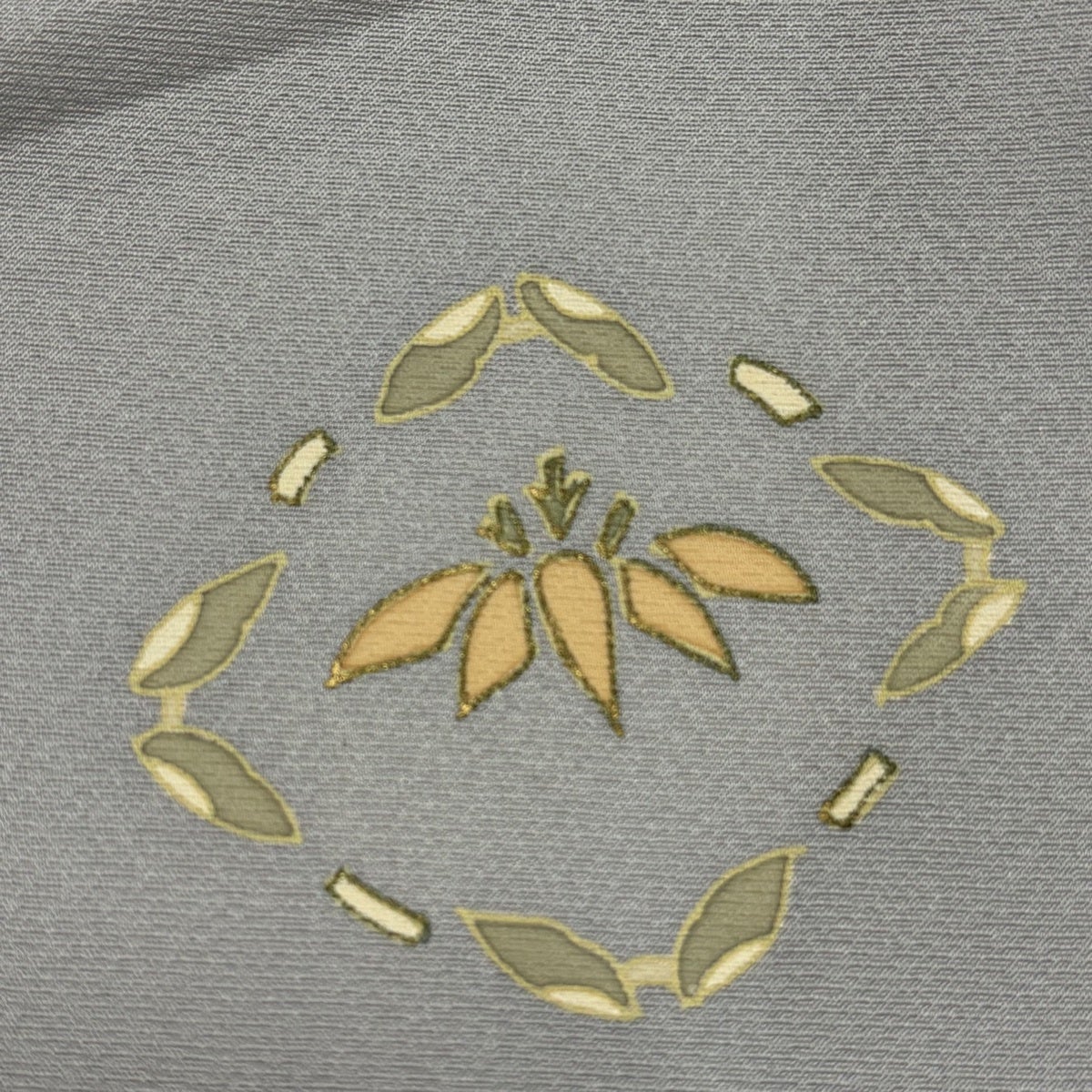 付下げ 身丈164.5cm 裄丈66cm M 袷 器物 草花 金銀彩 灰緑 正絹 秀品