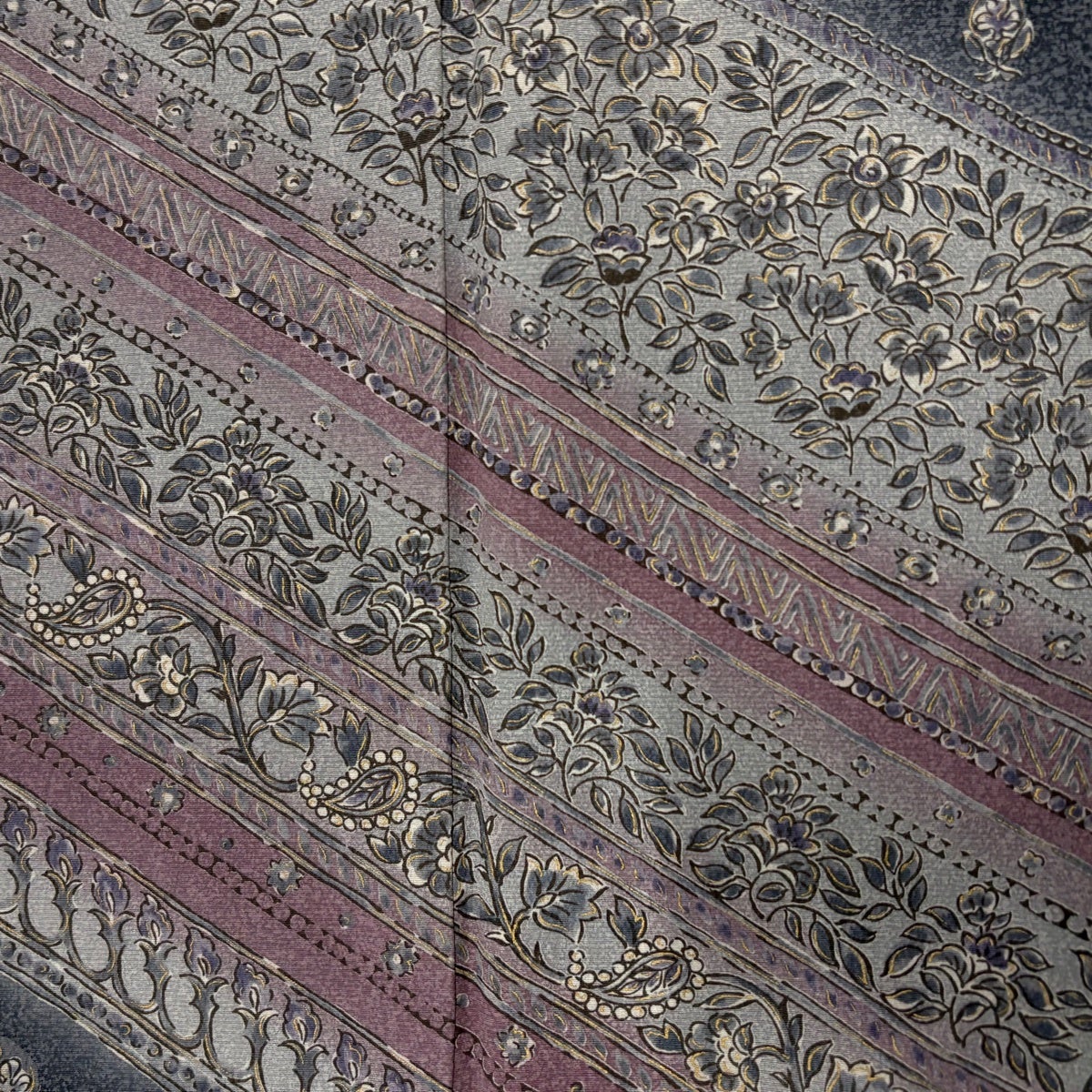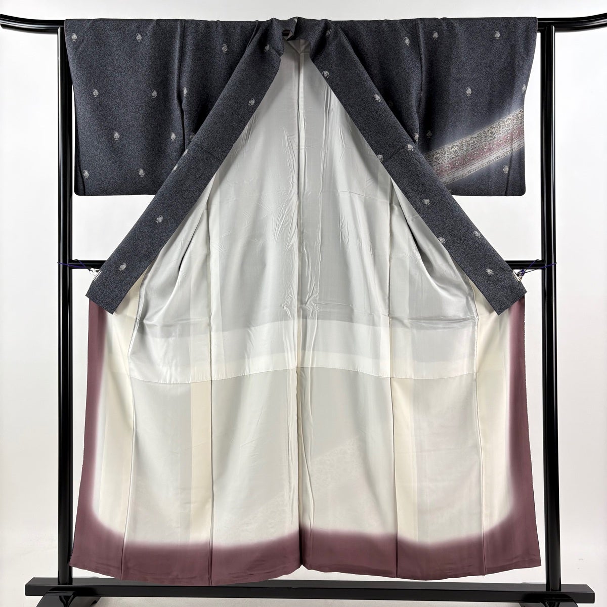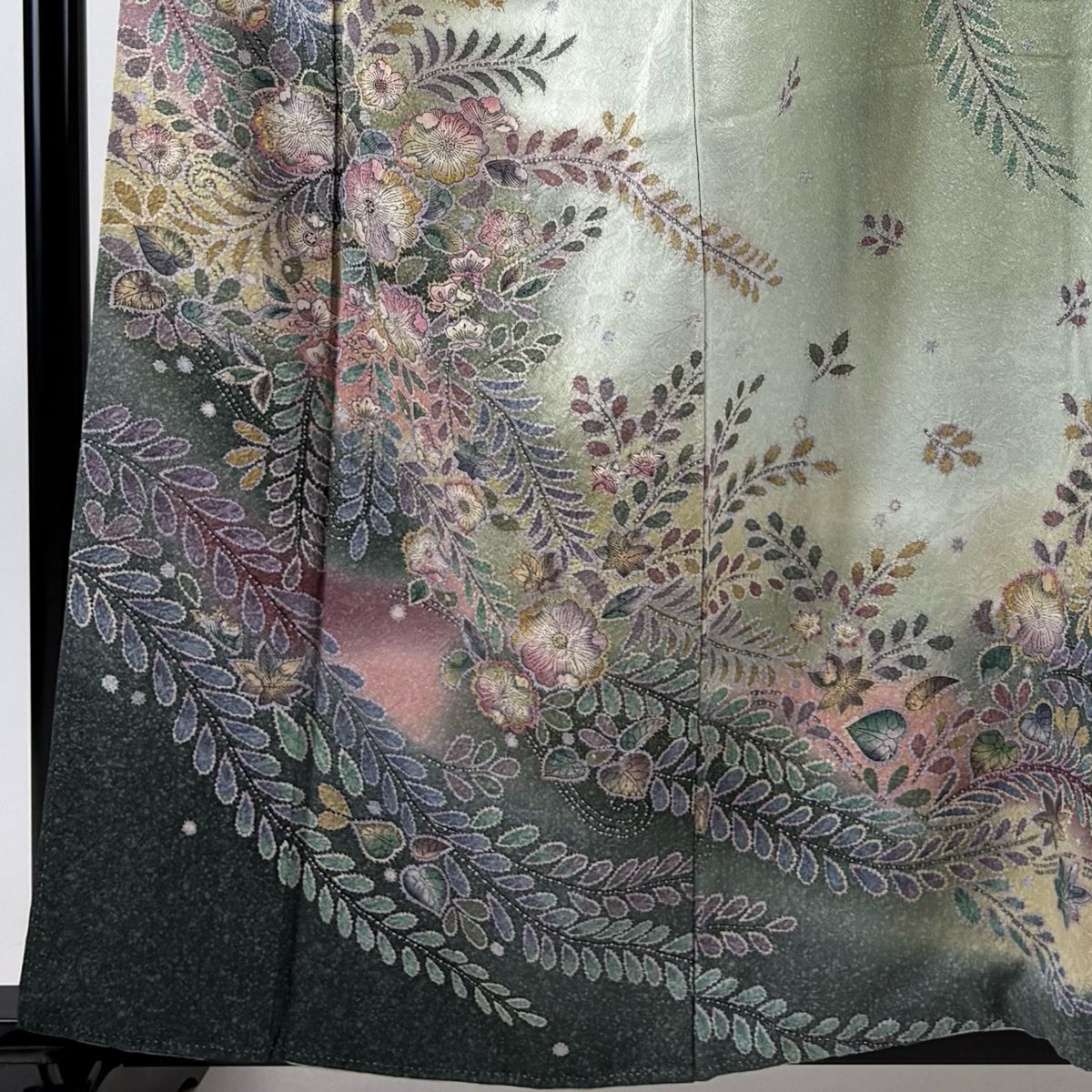 【美品】 付下げ 身丈154.5cm 裄丈63cm S 袷 草花 ぼかし 金彩 黒灰 正絹 名品