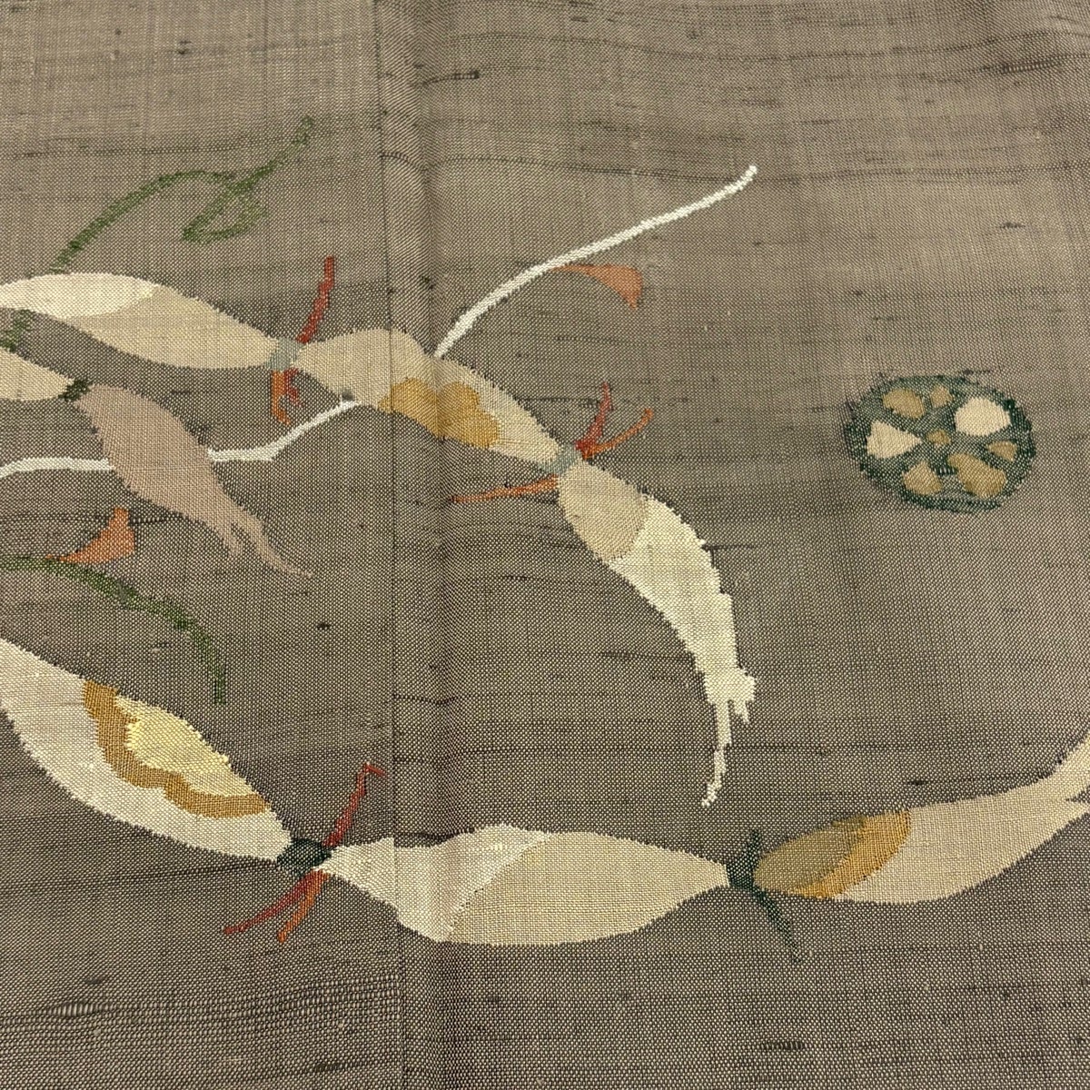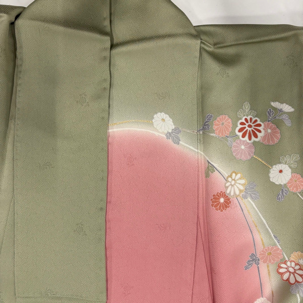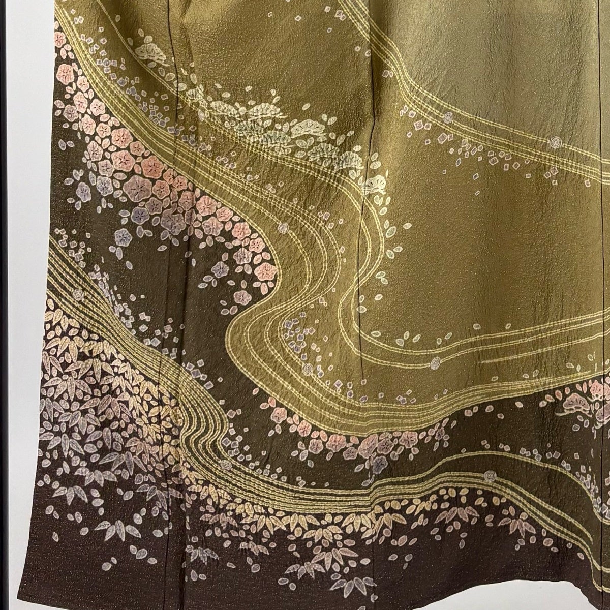 付下げ 身丈160cm 裄丈64cm M 袷 ますいわ屋 菊 萩 刺繍 金糸 茶緑色 正絹 秀品