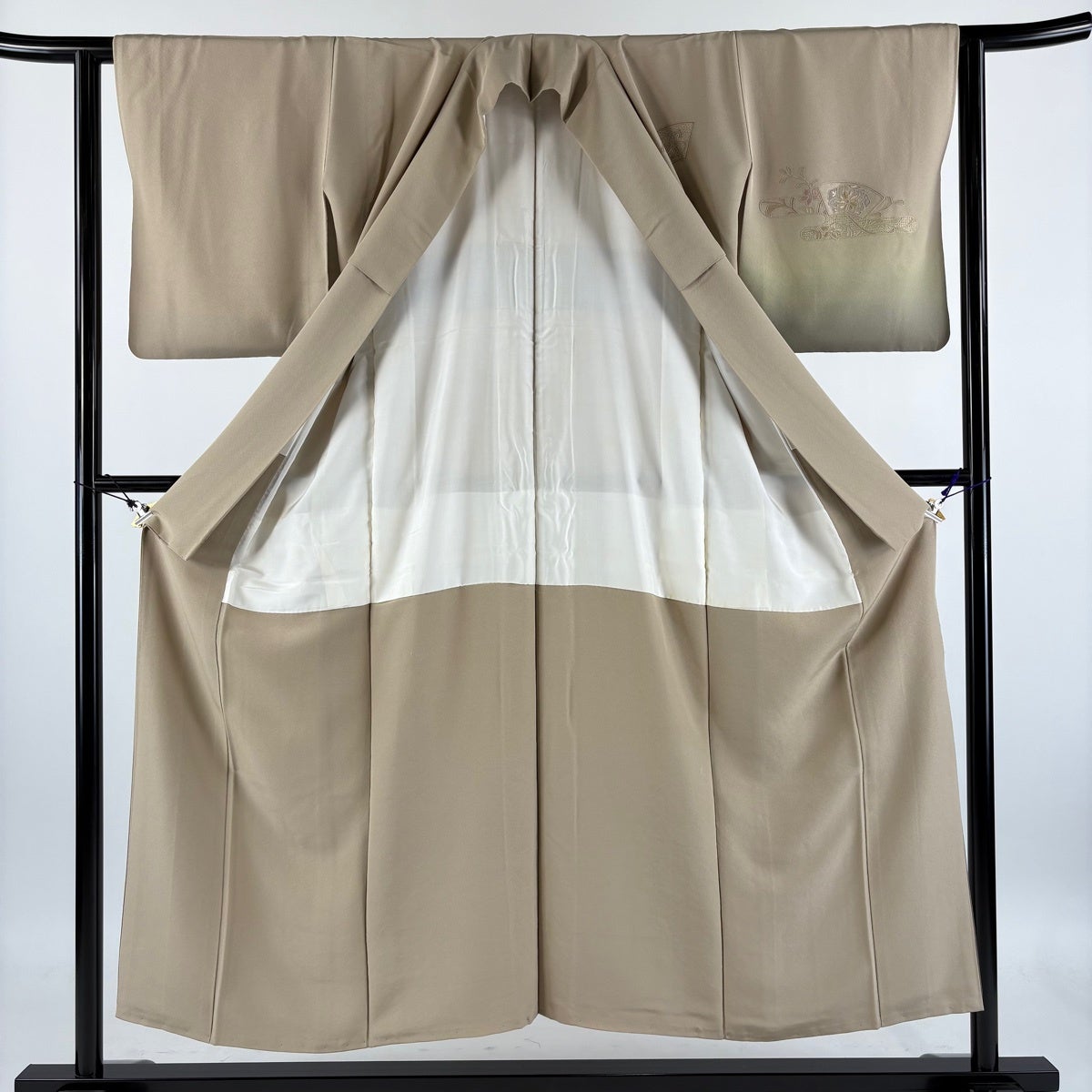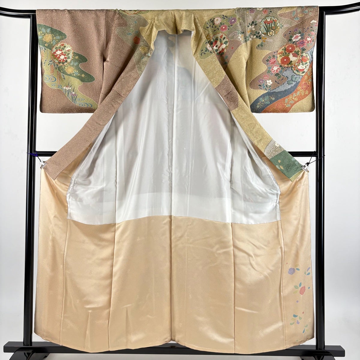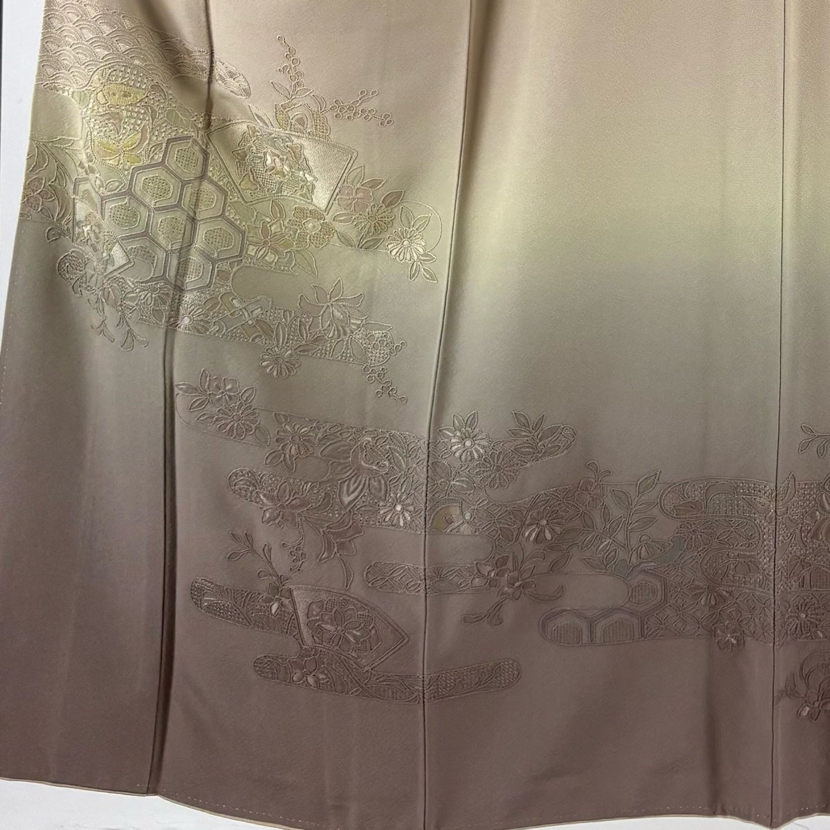 付下げ 身丈151.5cm 裄丈62cm S 袷 扇面 華文 刺繍 ぼかし 薄茶色 正絹 名品