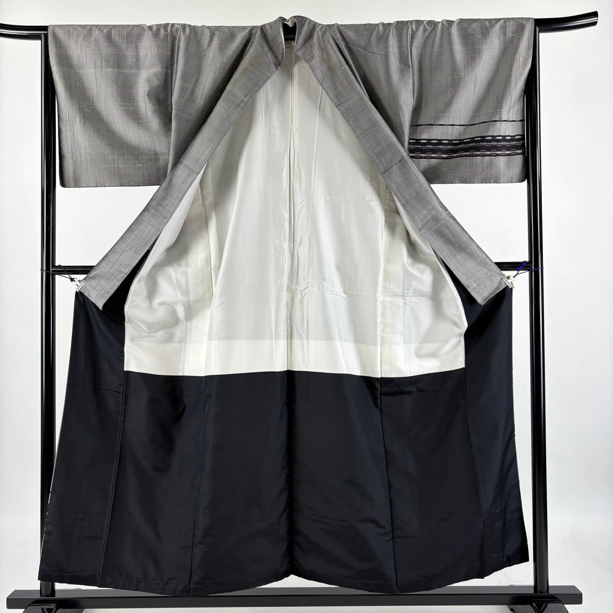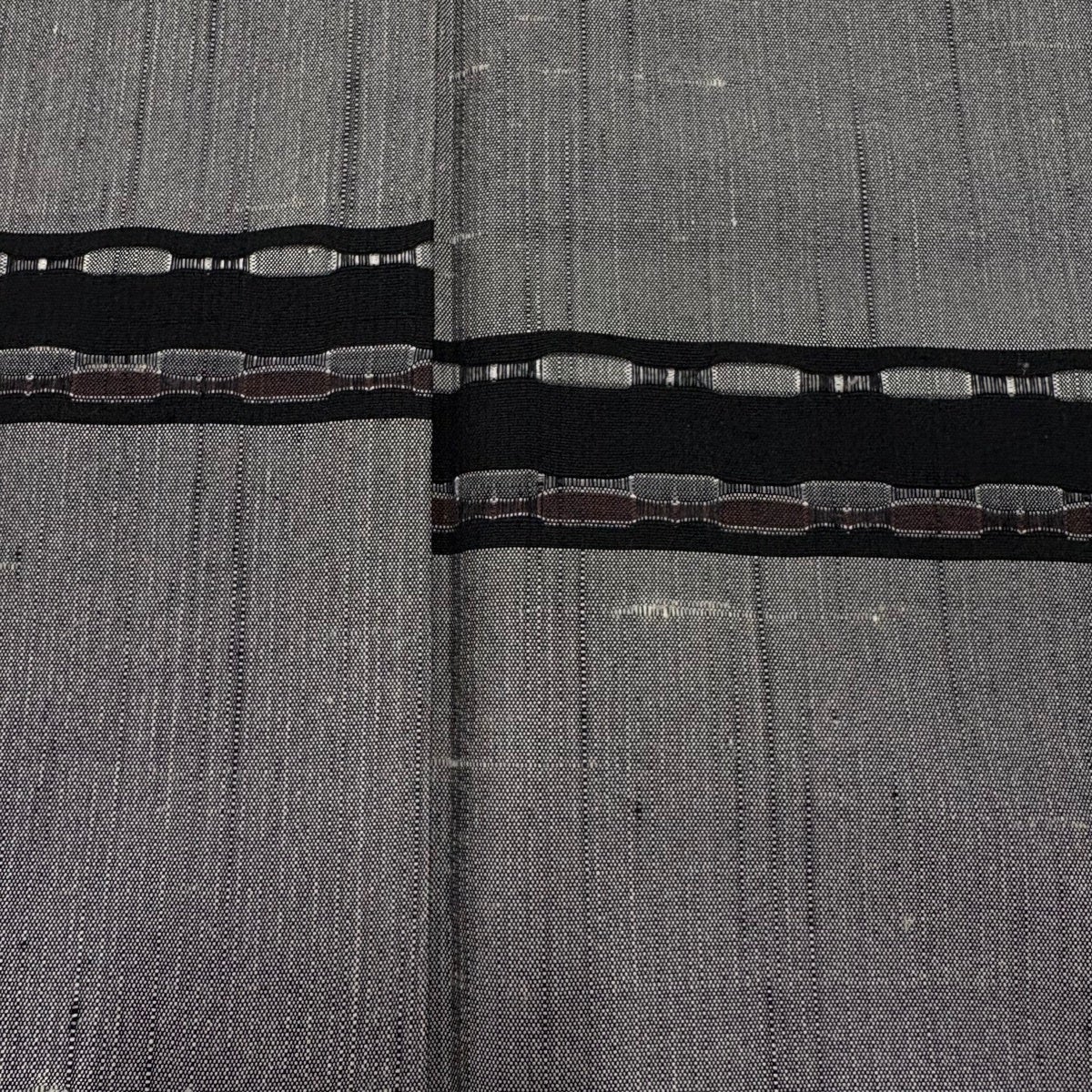 付下げ 身丈155cm 裄丈65.5cm M 袷 紬地 段縞 幾何学模様 黒灰 正絹 名品