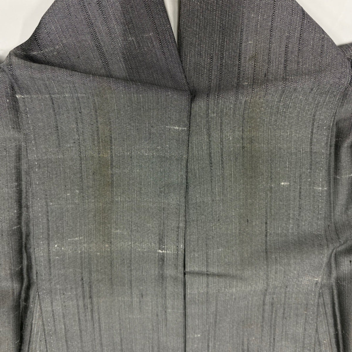 【美品】 男着物 身丈141.5cm 裄丈66cm M 絞り浴衣 幾何学 灰色 綿 名品