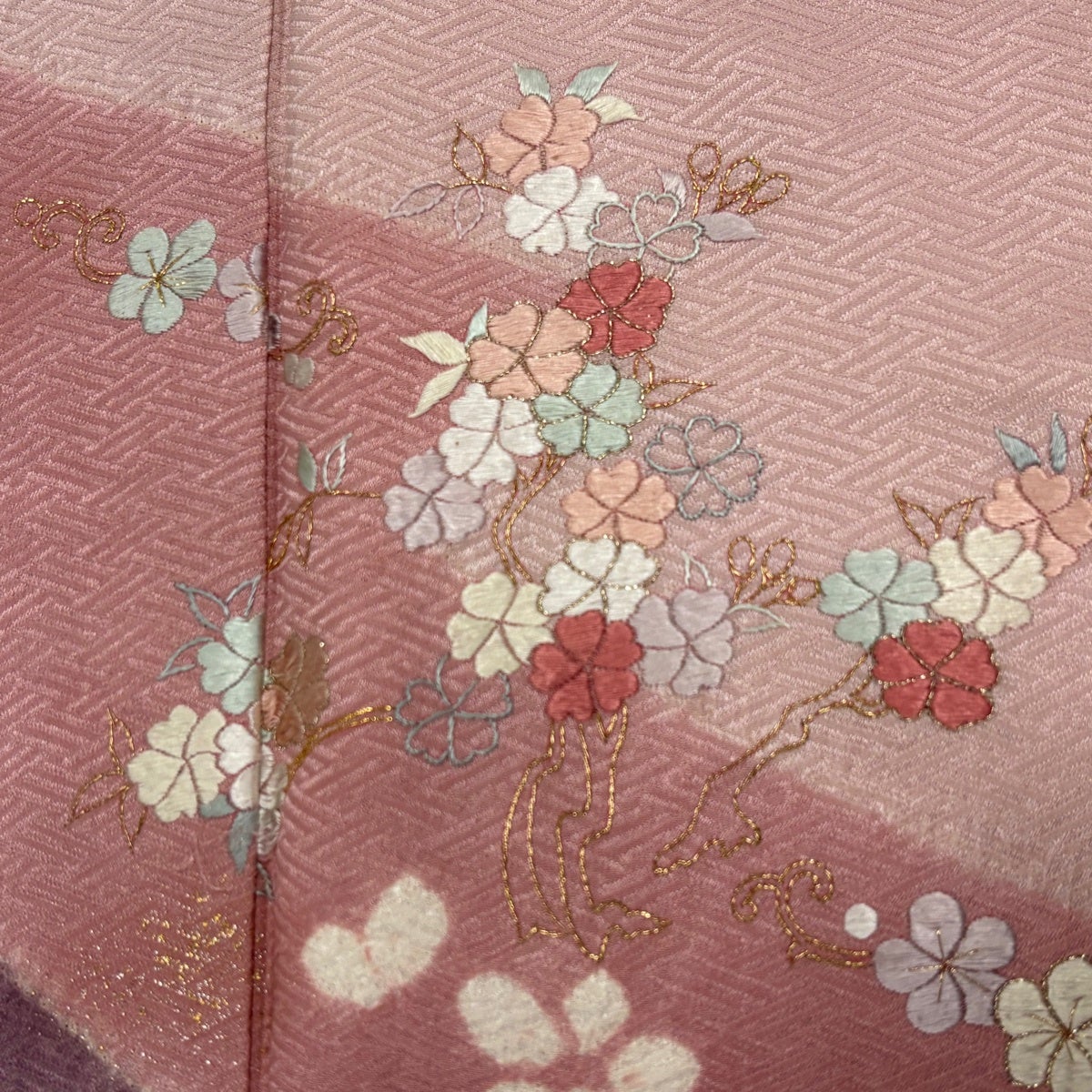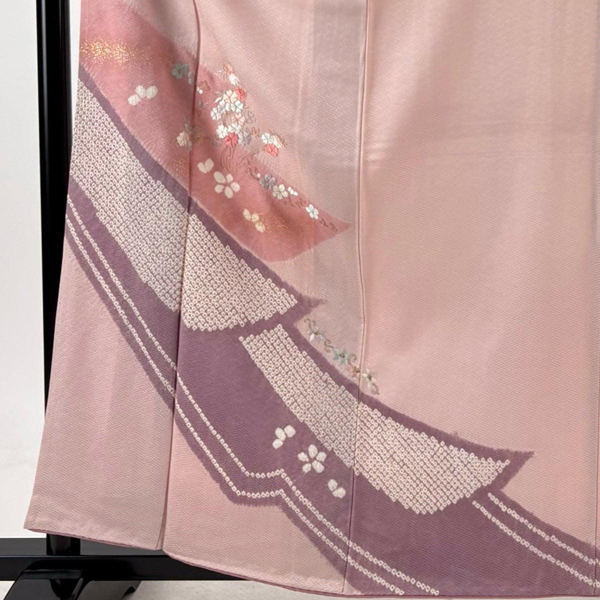 訪問着 身丈157.5cm 裄丈67cm M 袷 牡丹 松竹梅 金糸 ぼかし 薄ピンク 正絹 名品