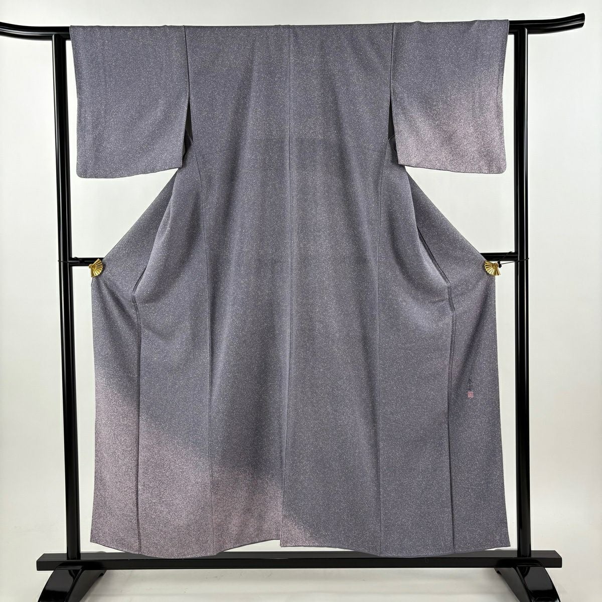 付下げ 身丈171.5cm 裄丈65cm M 袷 家屋 枝梅 染め分け ぼかし 灰紫 正絹 秀品