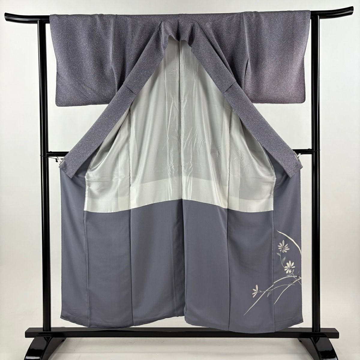 付下げ 身丈157cm 裄丈62cm S 袷 鈴乃屋 器物 草花 金銀彩 紫 正絹 秀品
