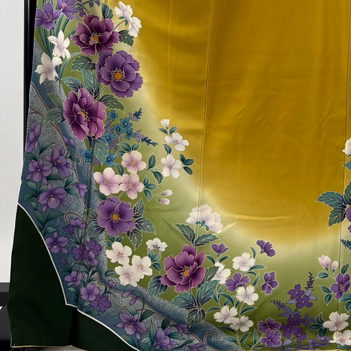 付下げ 身丈161.5cm 裄丈67.5cm L 袷 胴抜き 草花 染め分け ぼかし からし色 正絹 秀品