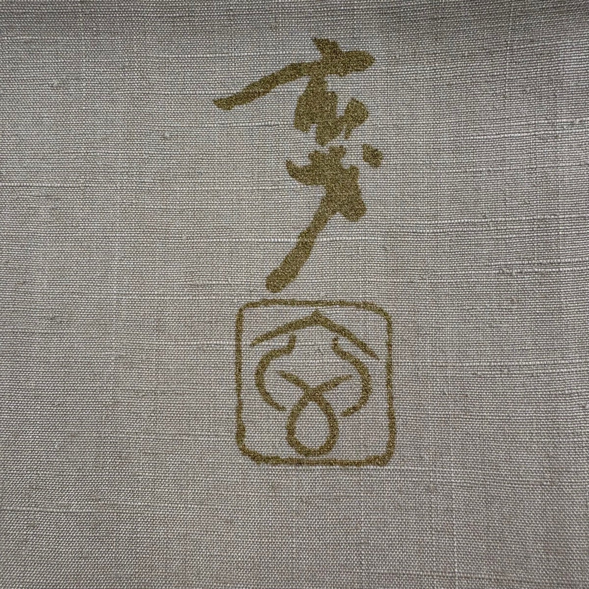 名古屋帯 名品 鈴乃屋 ふくろう 幾何学模様 金銀糸 刺繍 灰茶 正絹