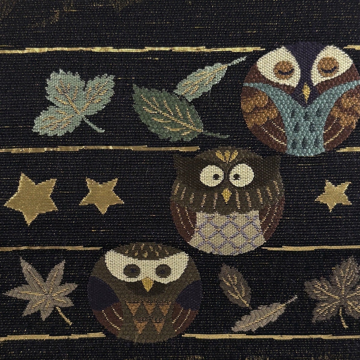 【美品】 袋帯 逸品 森のつどい ふくろう 止まり木 黒 お太鼓柄 正絹