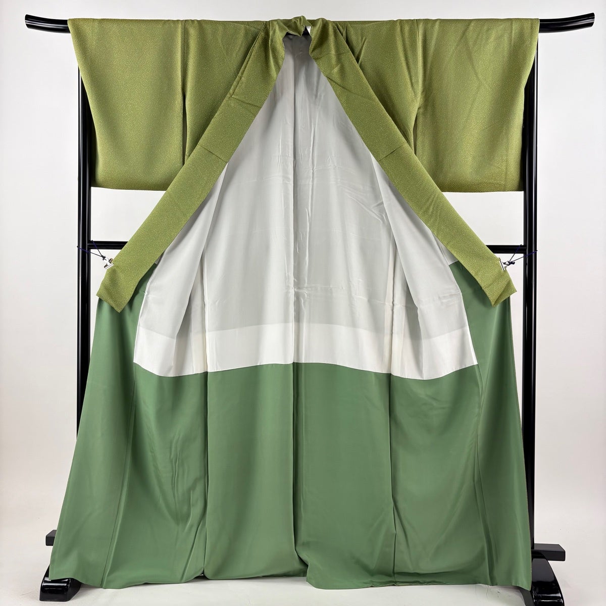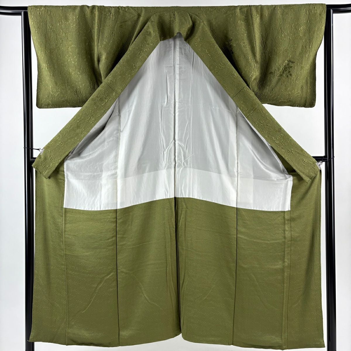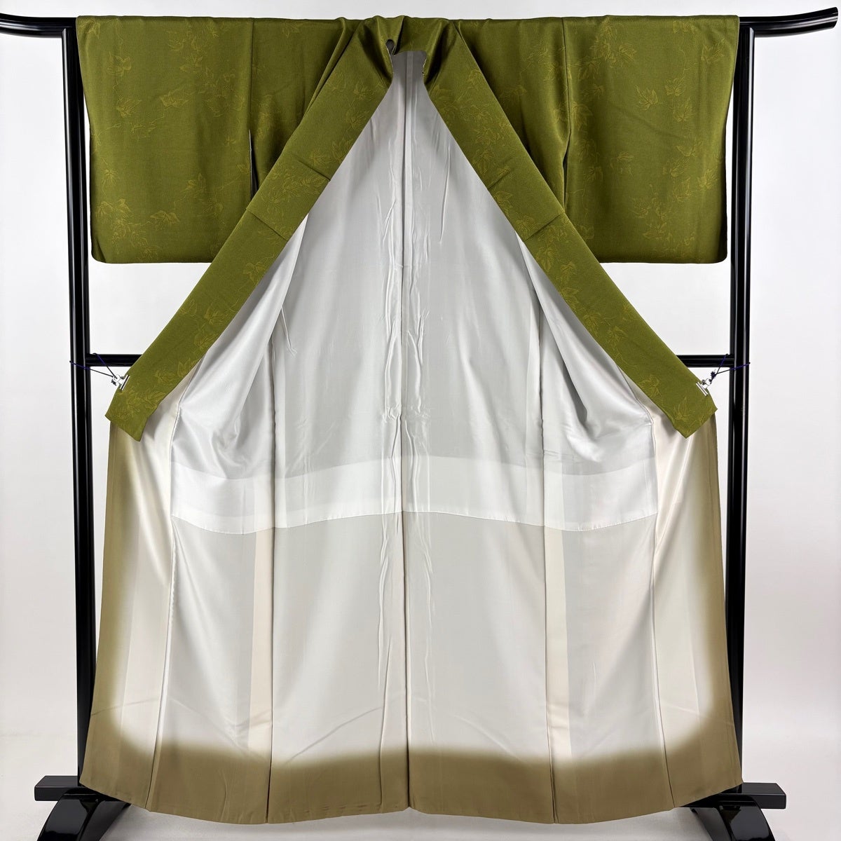 訪問着 身丈156cm 裄丈64cm M 袷 枝花 染め分け ぼかし よもぎ色 正絹 秀品