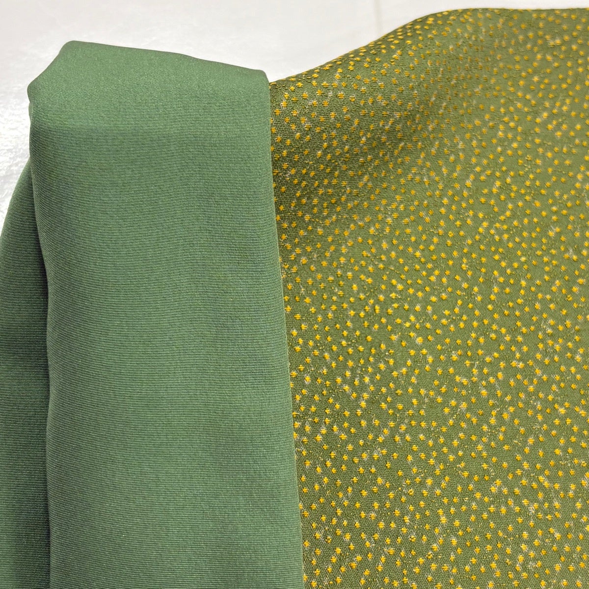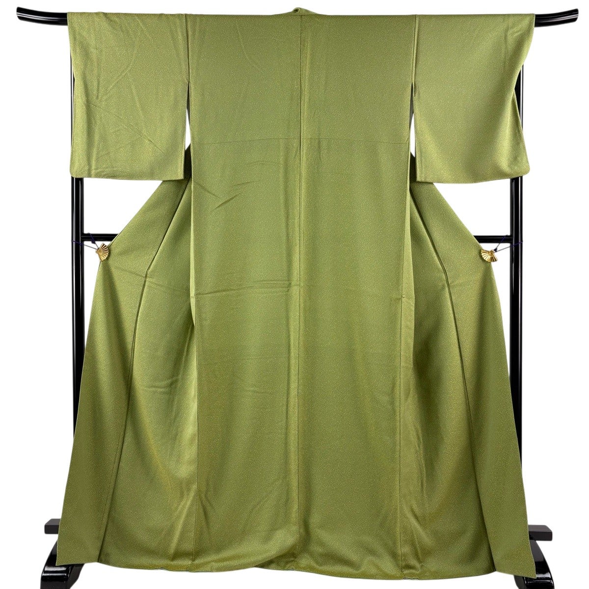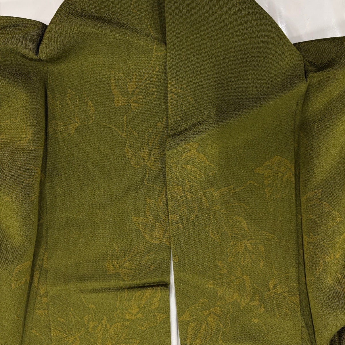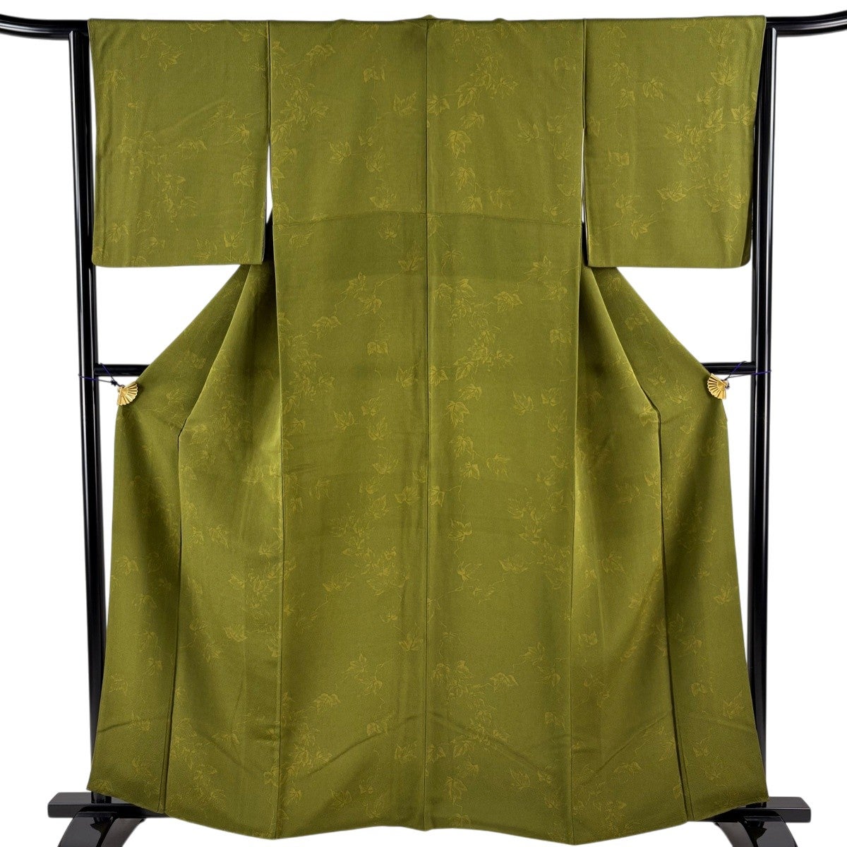 30%OFF 小紋 身丈160.5cm 裄丈64cm M 袷 蔦 縮緬 よもぎ色 正絹 優品 K30